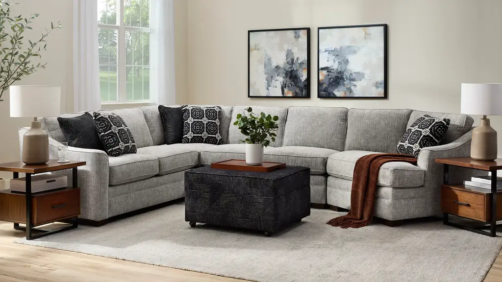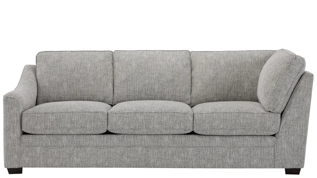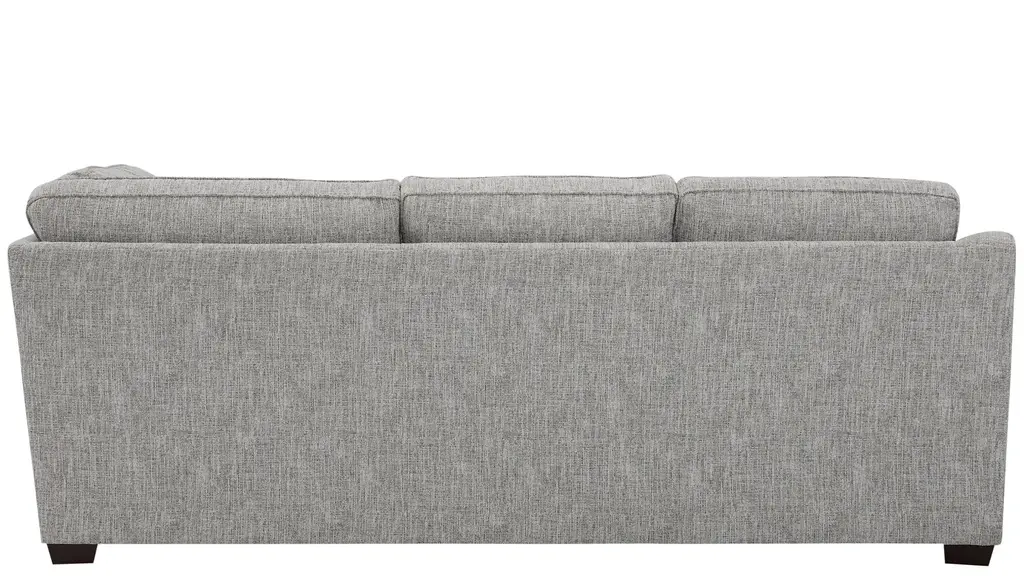 A standard sectional gets an upscale update in the Fairhaven collection, with options for conversation corners, chaise lounging, or both. Featuring a transitional style with cool neutral upholstery, the Fairhaven left arm-facing sofa w/return is a key component of an arrangement that's beautiful tucked in a cozy corner or featured as part of a defining focal point in an open concept living space. Striking textured accent pillows add dramatic pops of black and white for a designer touch.
