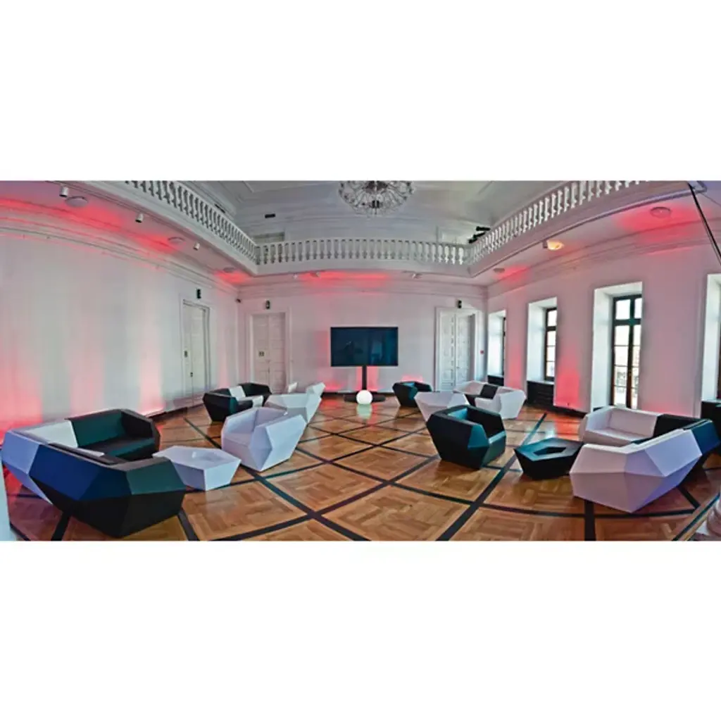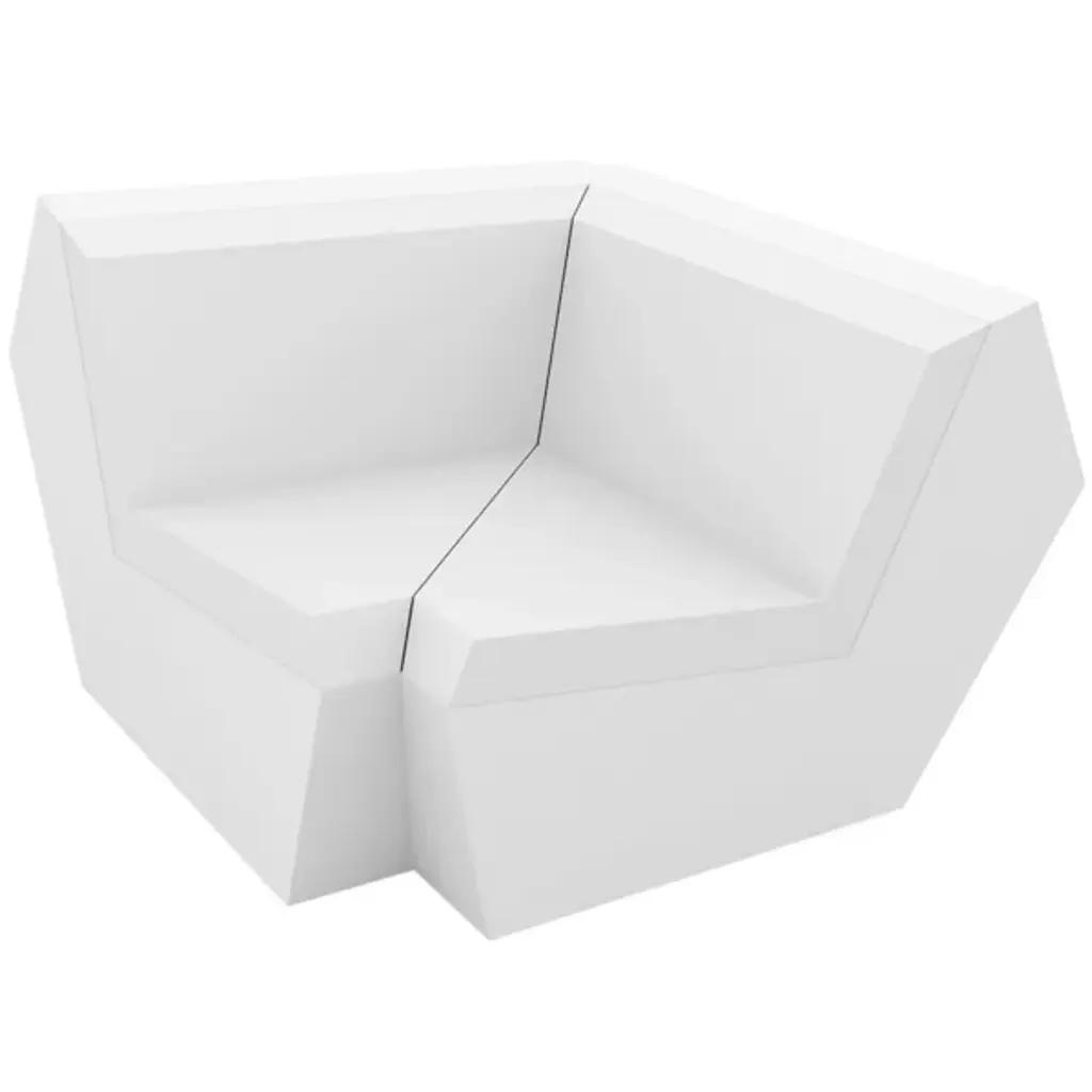 The piece around which your Faz Sectional Sofa rotates. The Vondom Faz Sofa 90 Degree Corner Section turns a straight piece into an L-shaped one. Its main shell is made out of rotation molded polyethylene in a bright matte white, while the interior is lined with cushions in a matching white vinyl upholstery (which also happens to be weather-resistant).