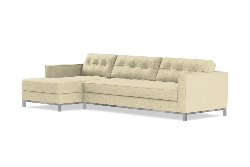 Fillmore may have been a rather disappointing President - that fact that no one remembers he was once President says everything - but the Fillmore Collection from Kyle Schuneman will surpass even the highest expectations. This 2-piece sectional sofa has deep seats with soft but supportive cushions and a stainless steel base, while tufted weaving adds a timeless sophistication. Any room that's feeling a little down will brighten up with a Fillmore sectional sofa made right in Los Angeles. Pick your favorite fabric color and chaise configuration to give the hottest downtown style a personal touch. The ultimate in sophistication and downtown style, The Fillmore is a hot addition to any room that needs a boost. A full stainless steel base and a nice deep seat make this a sectional you will have for years and the tufting on the seat and back cushions make it a timeless design.