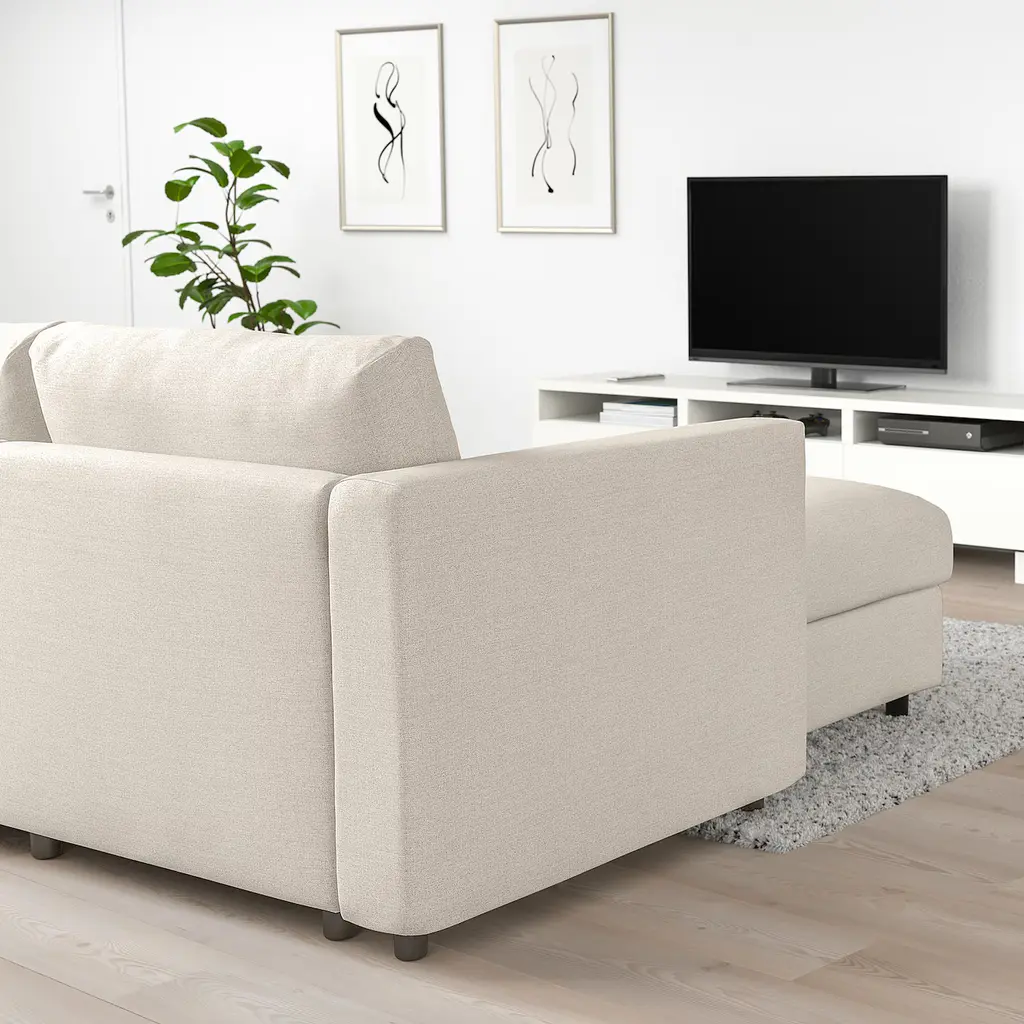 FINNALA Corner sectional, 5-seat w chaise - Gunnared beige. This comfortable sofa has pocket spring seat cushions with high resilience foam and a top layer of wadding. It provides a nice comfort and support for your body while maintaining the shape of the seat cushions.
