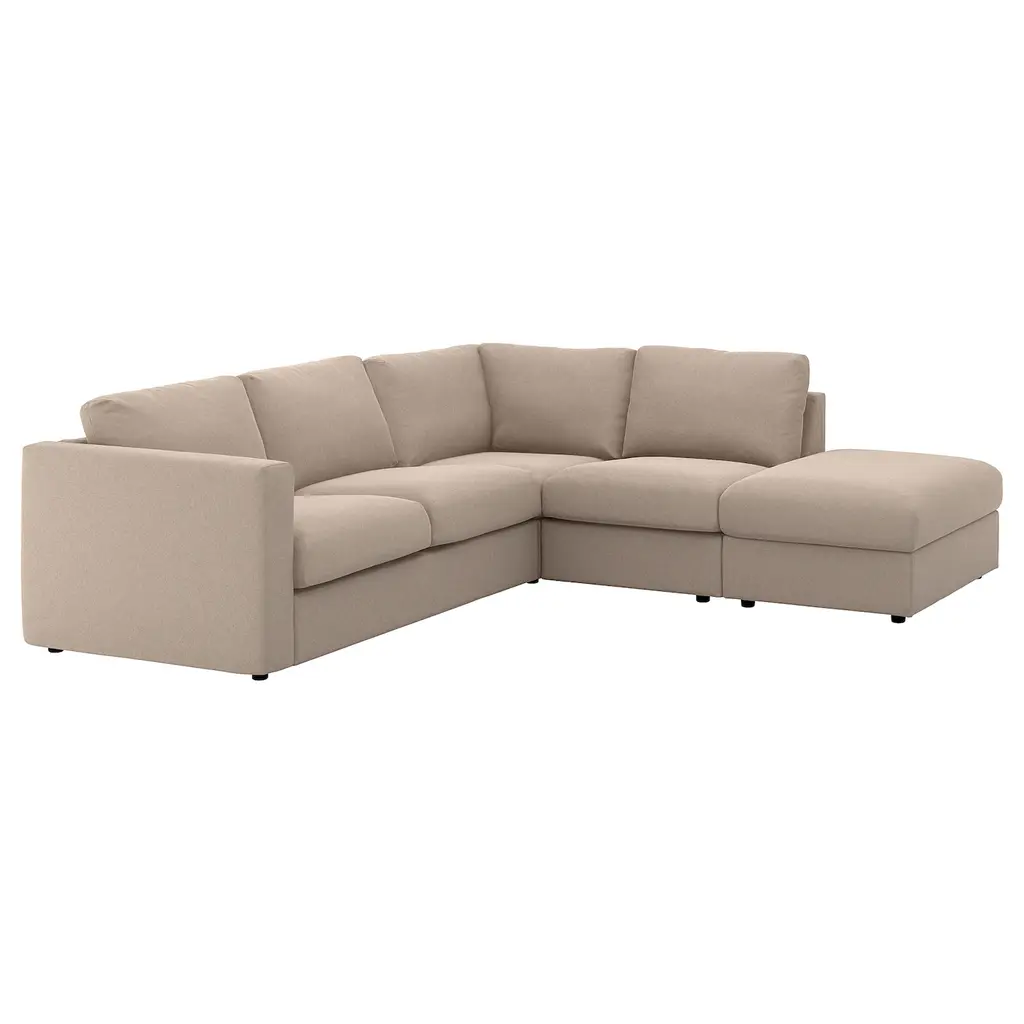 FINNALA Sectional, 4-seat corner - with open end/Tallmyra beige. This comfortable sofa has pocket spring seat cushions with high resilience foam and a top layer of wadding. It provides a nice comfort and support for your body while maintaining the shape of the seat cushions.
