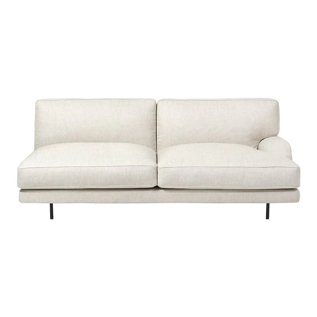 The Flaneur Sofa w/ Armrest can be connected to the Chaise Lounge w/ Armrest  or 2 Sofas w/ Armrests can be connected by a Flaneur Middle Sectional piece .  Danish-Italian design duo GamFratesi has reimagined the nineteenth-century English roll-arm sofa, known for its undulating profile, taut upholstery, deep seats and low rolled arms, for todayâ€s audiences. Adding a timeless Scandinavian simplicity to this enduring typology with straighter lines and clearer geometry, combined with the Italian aesthetic evident in its indulgent seat, they have created a modular sofa that invites complete relaxation in any setting, in line with the sense of carefree curiosity that its name evokes. Designed around an array of modules, the Flaneur Sofa reflects the growing demand for modular furniture in increasingly dynamic interior spaces, without compromising on appearance or comfort. The flexibility of the system offers infinite possibilities yet its low profile and rounded form ensure it does not resemble a typical Northern European modular sofa. Simple metal brackets make the constituent elements easy to connect and bespoke combinations enable entirely different solutions to users†changing needs. The Flaneur Sofa brings a contemporary feel to residential interiors with an echo of the classic and it is a simple piece that offers a touch of softness in a variety of hospitality environments.