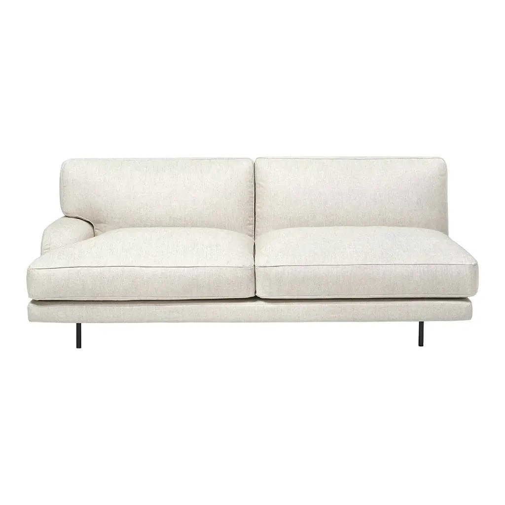 The Flaneur Sofa w/ Armrest can be connected to the Chaise Lounge w/ Armrest  or 2 Sofas w/ Armrests can be connected by a Flaneur Middle Sectional piece .  Danish-Italian design duo GamFratesi has reimagined the nineteenth-century English roll-arm sofa, known for its undulating profile, taut upholstery, deep seats and low rolled arms, for todayâ€s audiences. Adding a timeless Scandinavian simplicity to this enduring typology with straighter lines and clearer geometry, combined with the Italian aesthetic evident in its indulgent seat, they have created a modular sofa that invites complete relaxation in any setting, in line with the sense of carefree curiosity that its name evokes. Designed around an array of modules, the Flaneur Sofa reflects the growing demand for modular furniture in increasingly dynamic interior spaces, without compromising on appearance or comfort. The flexibility of the system offers infinite possibilities yet its low profile and rounded form ensure it does not resemble a typical Northern European modular sofa. Simple metal brackets make the constituent elements easy to connect and bespoke combinations enable entirely different solutions to users†changing needs. The Flaneur Sofa brings a contemporary feel to residential interiors with an echo of the classic and it is a simple piece that offers a touch of softness in a variety of hospitality environments.