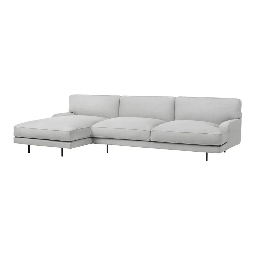 The Flaneur Sofa w/ Armrest can be connected to the Chaise Lounge w/ Armrest  or 2 Sofas w/ Armrests can be connected by a Flaneur Middle Sectional piece .  Danish-Italian design duo GamFratesi has reimagined the nineteenth-century English roll-arm sofa, known for its undulating profile, taut upholstery, deep seats and low rolled arms, for todayâ€s audiences. Adding a timeless Scandinavian simplicity to this enduring typology with straighter lines and clearer geometry, combined with the Italian aesthetic evident in its indulgent seat, they have created a modular sofa that invites complete relaxation in any setting, in line with the sense of carefree curiosity that its name evokes. Designed around an array of modules, the Flaneur Sofa reflects the growing demand for modular furniture in increasingly dynamic interior spaces, without compromising on appearance or comfort. The flexibility of the system offers infinite possibilities yet its low profile and rounded form ensure it does not resemble a typical Northern European modular sofa. Simple metal brackets make the constituent elements easy to connect and bespoke combinations enable entirely different solutions to users†changing needs. The Flaneur Sofa brings a contemporary feel to residential interiors with an echo of the classic and it is a simple piece that offers a touch of softness in a variety of hospitality environments.