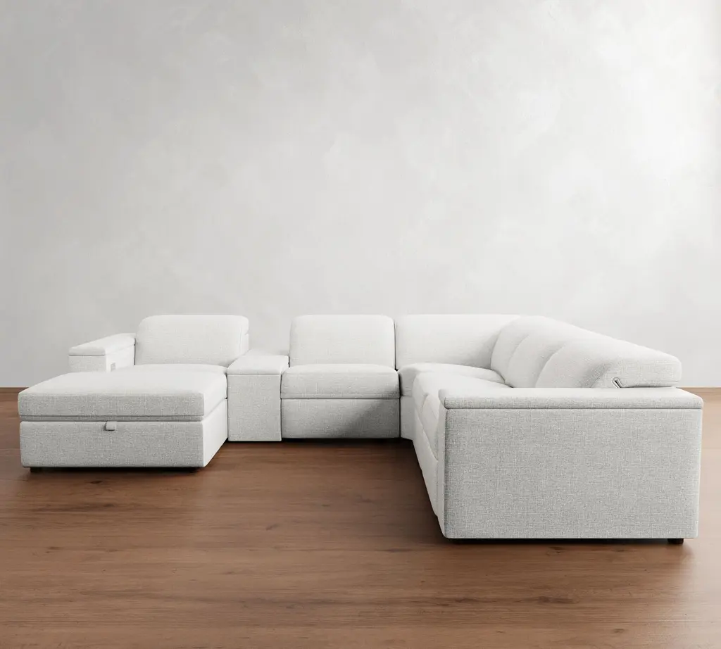 Designed with a welcoming silhouette, track arms, and neatly tailored upholstery, the pieces in our Frankie Collection bring style as well as supreme comfort with adjustable headrests and the option for power reclining seats. Shown in the 4 PC Frankie Reclining Sectional.Z Gallerie exclusive