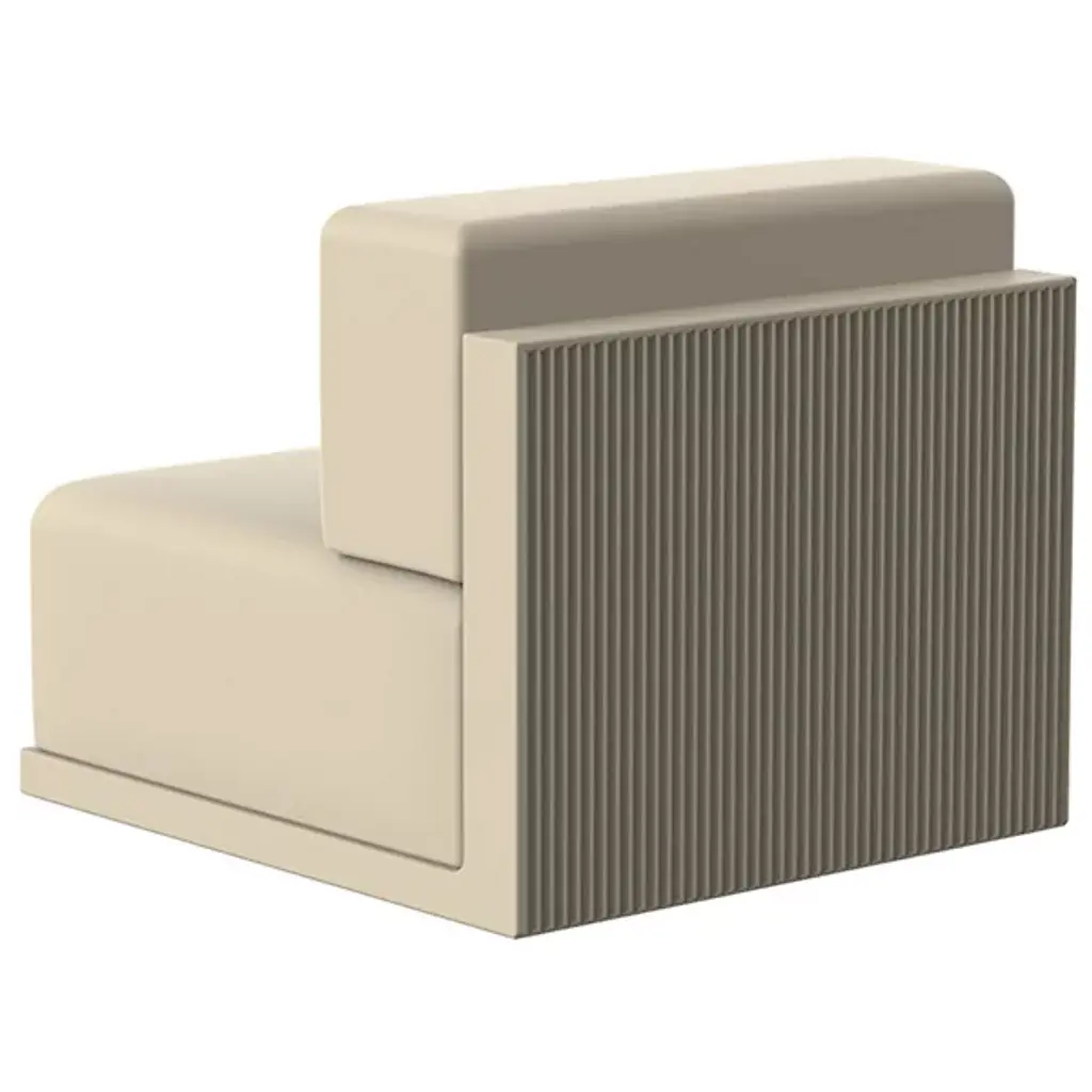 A comfortably glamorous piece, inspired by Art Deco furnishings. The Gatsby Outdoor Right Corner Sofa Sectional by Vondom was designed by Ramon Esteve to work with other Gatsby modules to help you create a sophisticated, custom outdoor sectional. Its frame is rotation-molded polyethylene resin, with deep vertical ridges hinting at its Deco design inspiration. The seat and back cushions are both plush and durable, made to withstand the outdoor elements with smooth acrylic fabric upholstery.