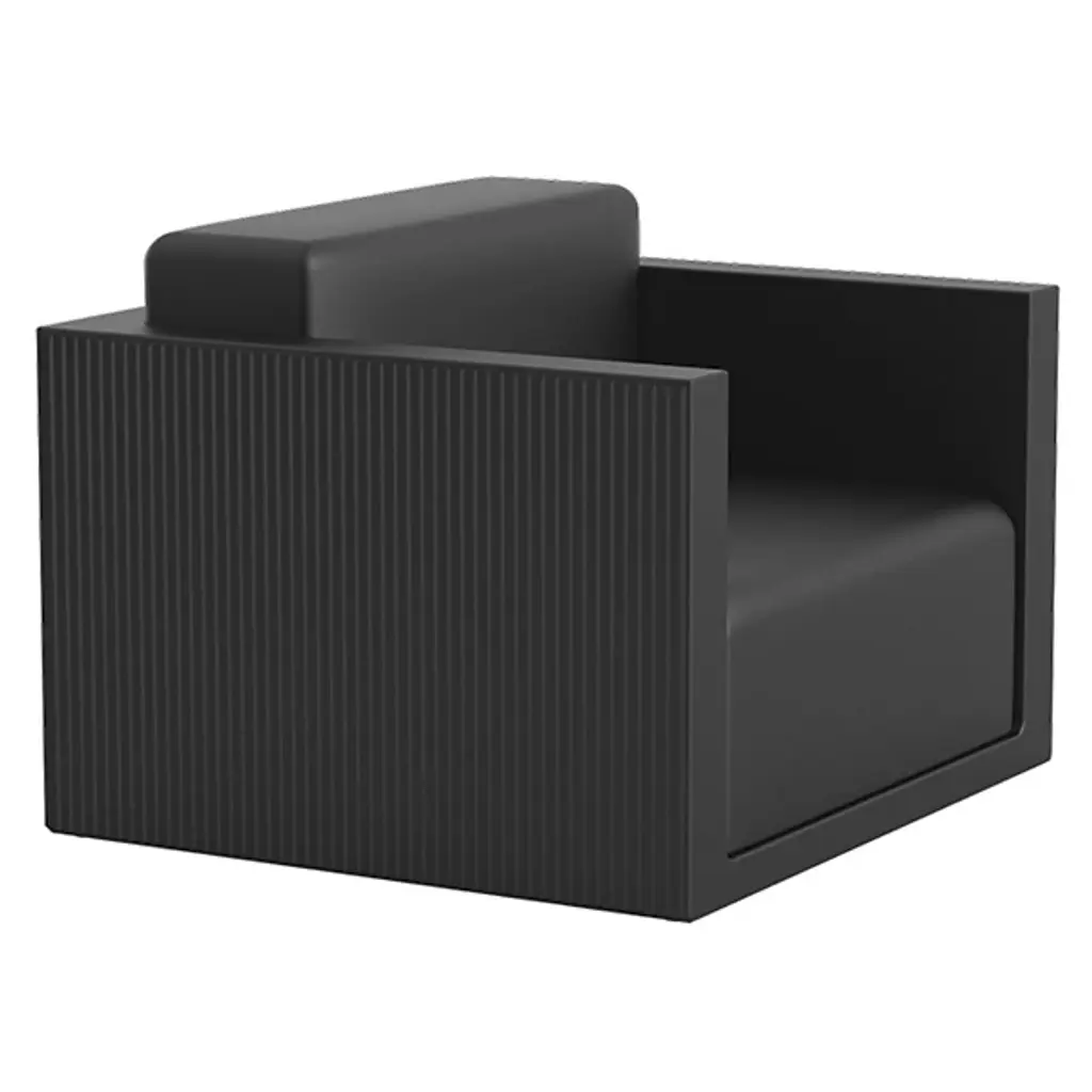 A smooth addition to a modern outdoor lounge area. The Gatsby Outdoor Round Corner 45 Degree Sofa Sectional by Vondom was designed by Ramon Esteve to add a touch of 1920s glamour to minimalist design. It has a gently curved frame that’s made of rotation-molded polyethylene resin, with vertical ridges that give the overall piece a Deco feel and help it to blend in seamlessly with other Gatsby sofa sectional modules. Cushions in acrylic fabric upholstery complete the clean look and provide supportive comfort.