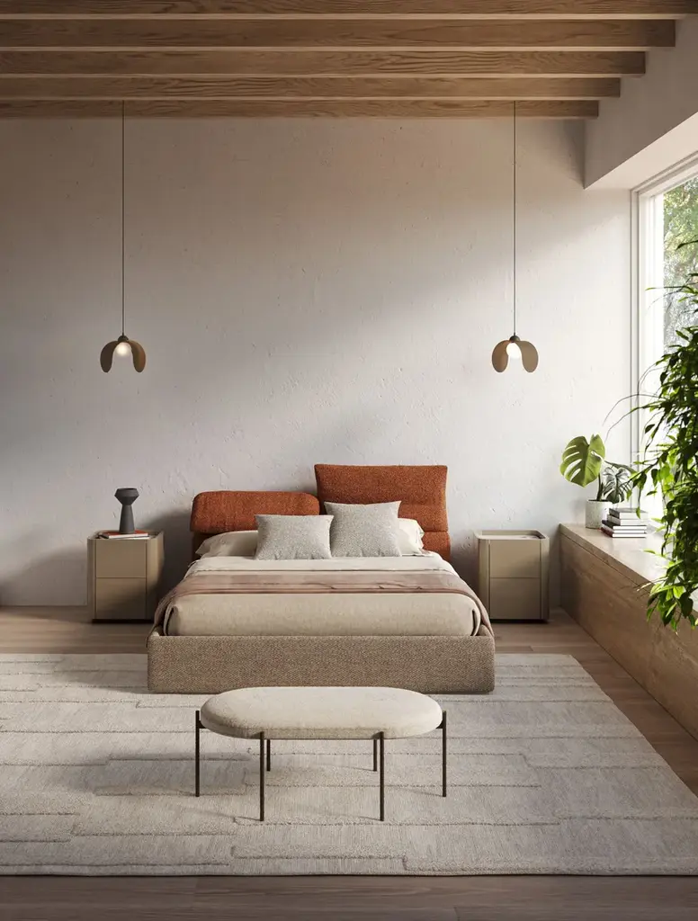 The Gavi bed is a soft and flexible proposal that blends harmoniously into the home environment with ease and naturalness. The moldable twist headboard with different inclinations allows for optimal comfort, shaping to perfection whether lying down or sitting up. The standard version allows the bed to be accessorized with optional storage, while the "up" variant raises it off the ground with an elegant metal foot.Headboard structure: solid fir + plywood + fibra wood. Padding: polyurethane 21 kg/m3 and 30 kg/m3 + polyester fiber 250 gr/m2. Articulated backrests iron frame + 30 kg/m3 polyurethane + gel flake. Frame: multilayer. Padding: polyurethane 21 kg/m3 + polyester fiber 340 gr/m2. Orthopedic bed base with beech wood slats. Invisible plastic feet.Double-lift bed base option with velveteen-covered MDF storage compartment.From the creative vision of Liu Jo was born the custom-made living room. Craftsmanship, versatility, style and sustainability come together to enter the world of home and transform the furniture. Liujo’s living collection is a declaration of intent: new forms and customizable materials open the space to new reading keys and give life to unique pieces. The house is dressed and changed to meet all the needs of everyday life detaching from the classic nomenclatures and running on elegant lines, delicate finishes, soft fabrics and customizable colors. Not only sofas, poufs or armchairs, but design with a strong identity, free, sectional and removable, with irregular and fresh shapes that revolutionize the environment. Recognizable and iconographic in ideas, shape and finish, the pieces of furniture by Liu Jo find their reason for being in contrast: structures and rigid elements are designed to contain and embrace curves and movements, enhancing personal style and easily changing position and function.