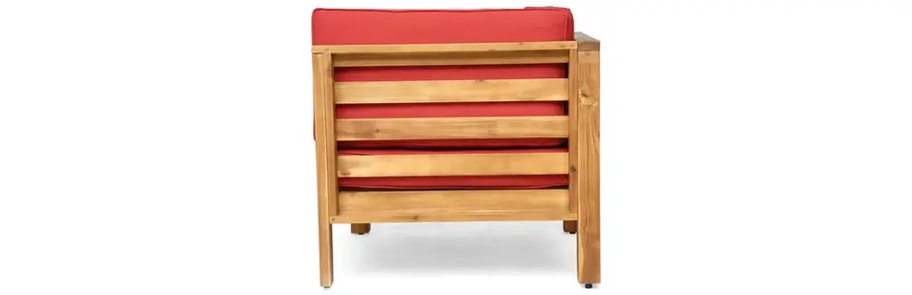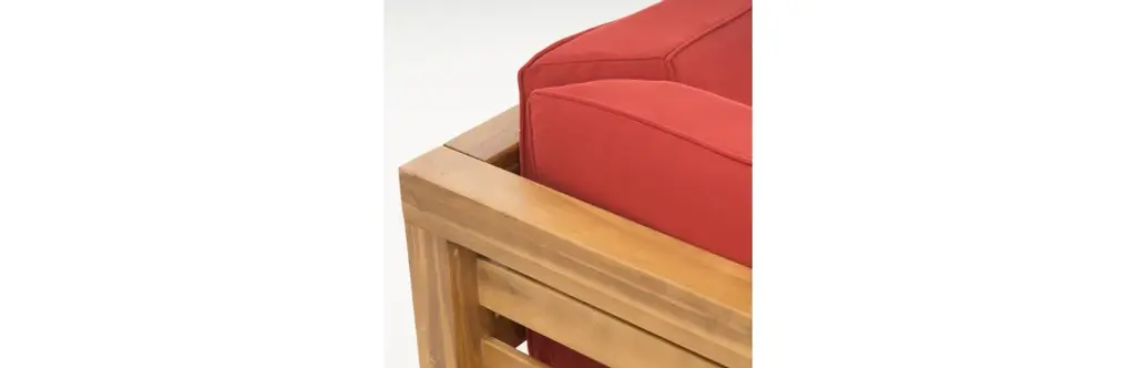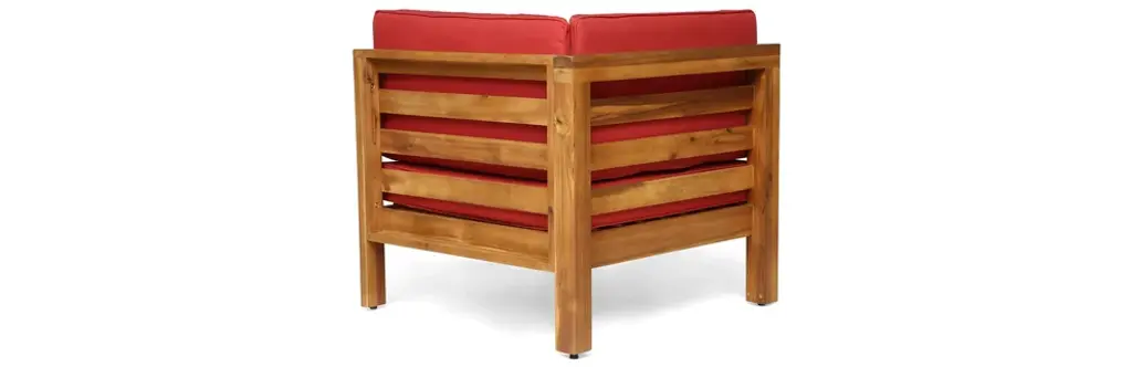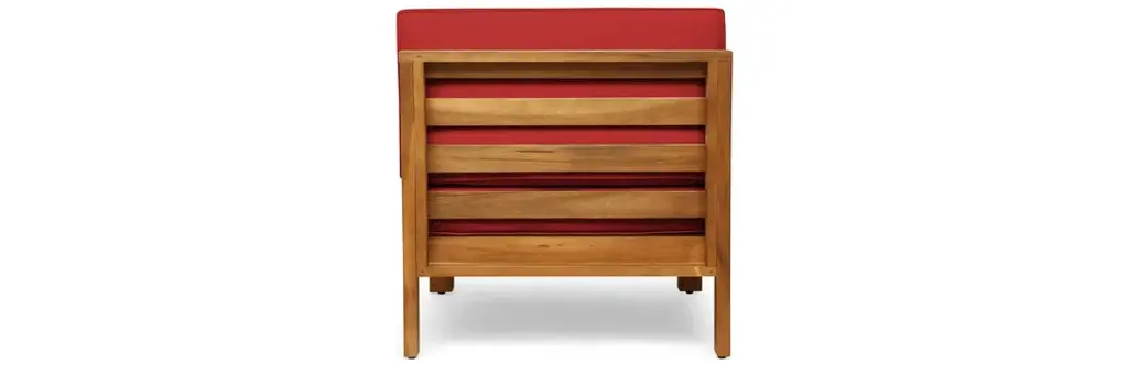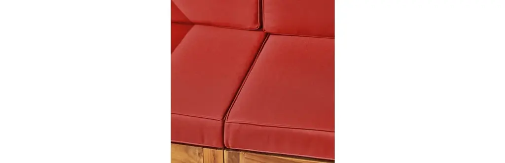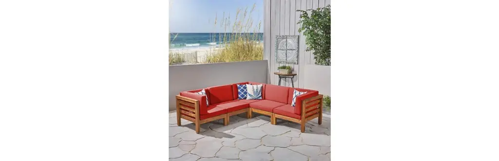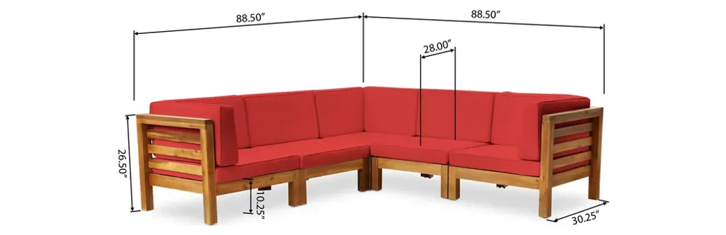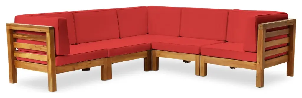 Gdf Studio Dawson Outdoor 5-Seater V-Shaped Acacia Wood Sectional Sofa Set, Teak/red