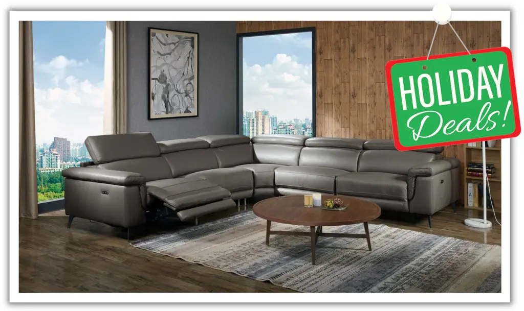 Gio Italia Hendrix Leather Power Sectional Sofa With Two Recliners