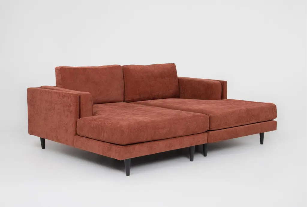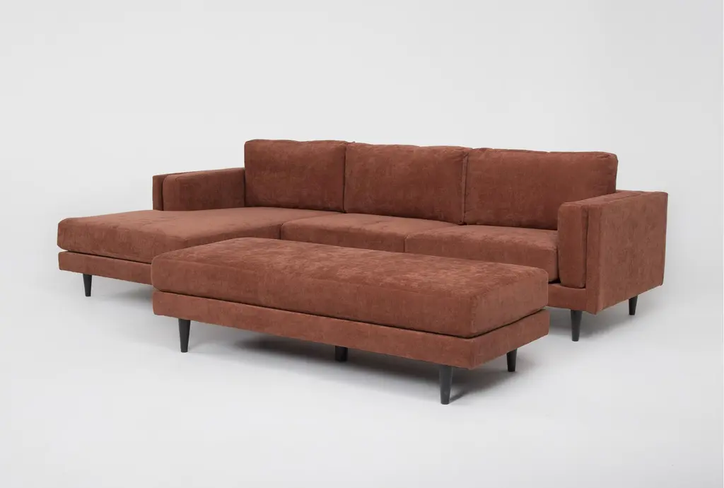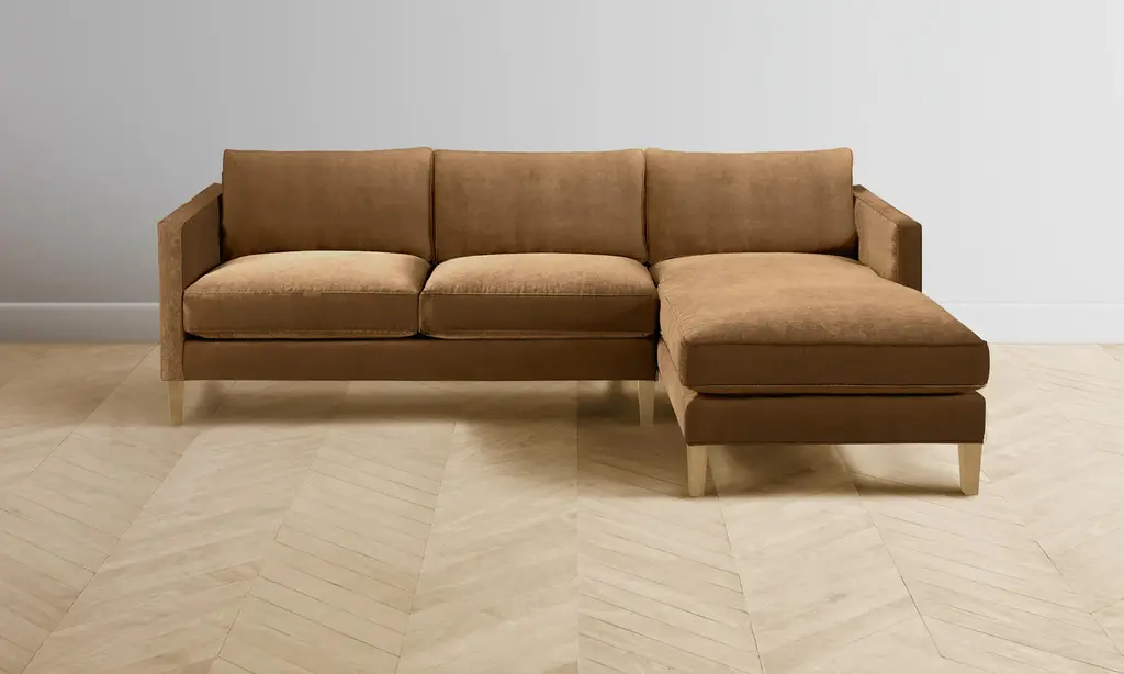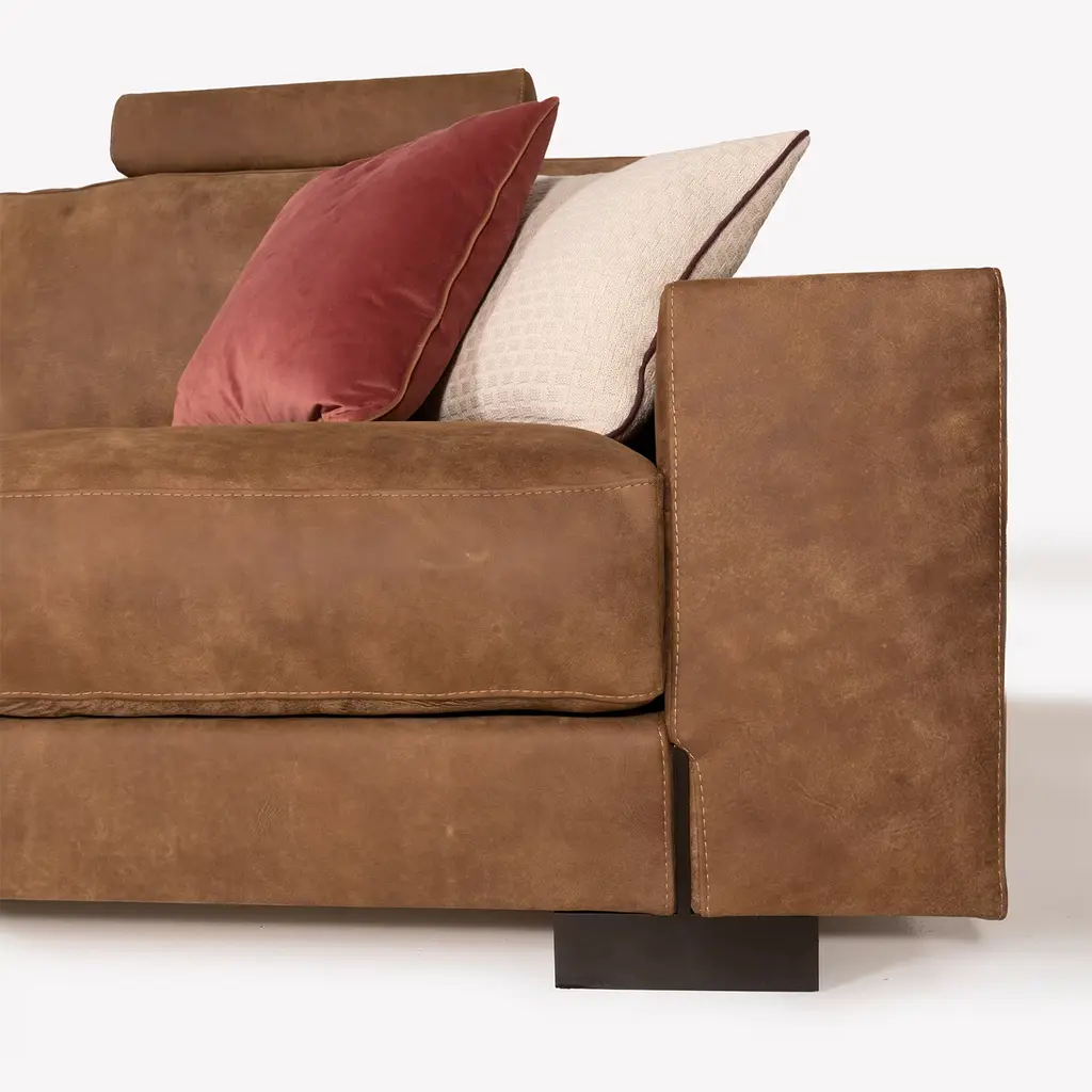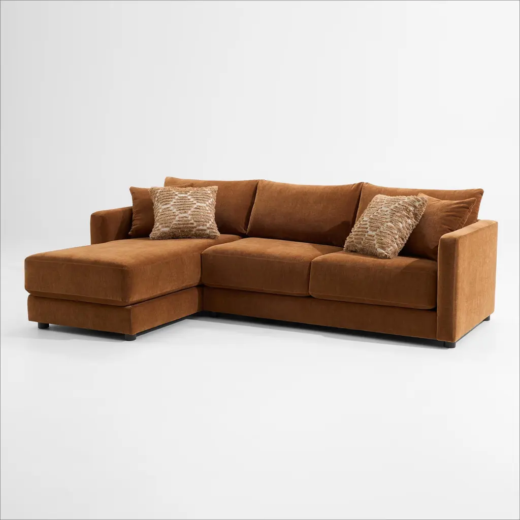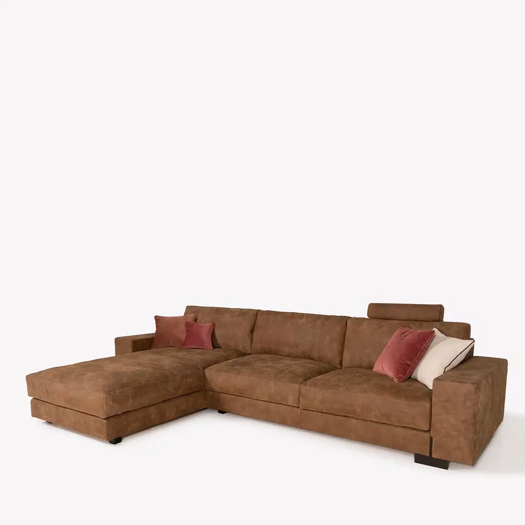 Glam Brown Camel Leather Sofa With Chaise Longue