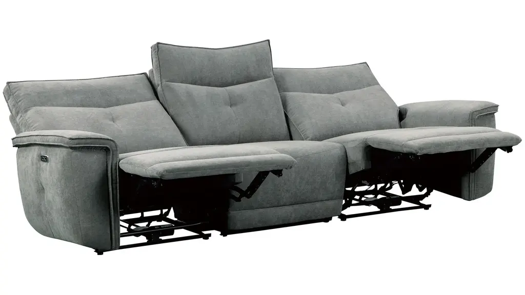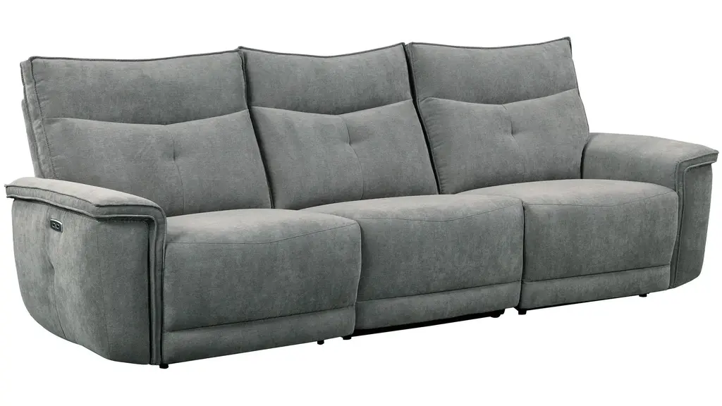 Providing ample seating in modern form the Graceland Sectional. The classic sofa is book-ended by USB port enhanced end power recliners allowing for maximum versatility when planning the layout of your living room. Dark gray fabric provides a neutral palette for your decorative preferences. The power reclining mechanism of the reclining ends and armless chair brings you to your desired position with a touch of the button.