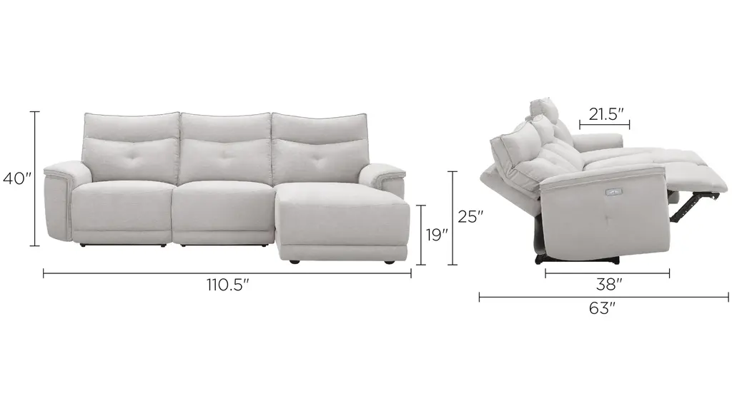 Beauty, versatility and comfort all rolled into one, the Graceland 3-pc. sectional truly shines. Its modern style boasts clean lines and luxuriously soft chenille upholstery. Although it is pretty to look at, Graceland also comes packed with function. You'll get features like power-reclining seats and headrests and USB charging ports. No matter what, you'll find that the best part about Graceland is its flexibility when it comes to decorating.