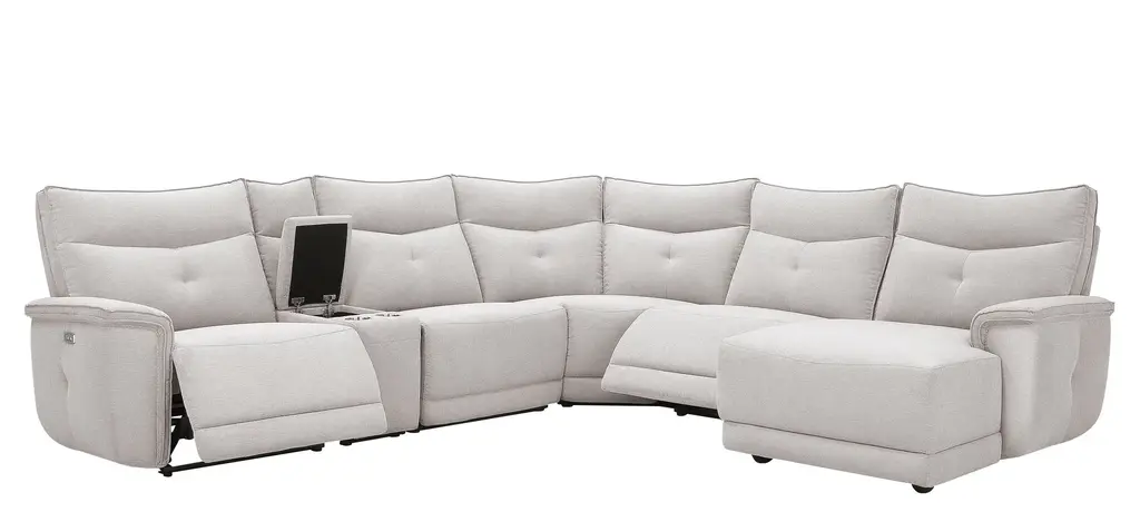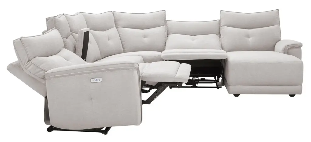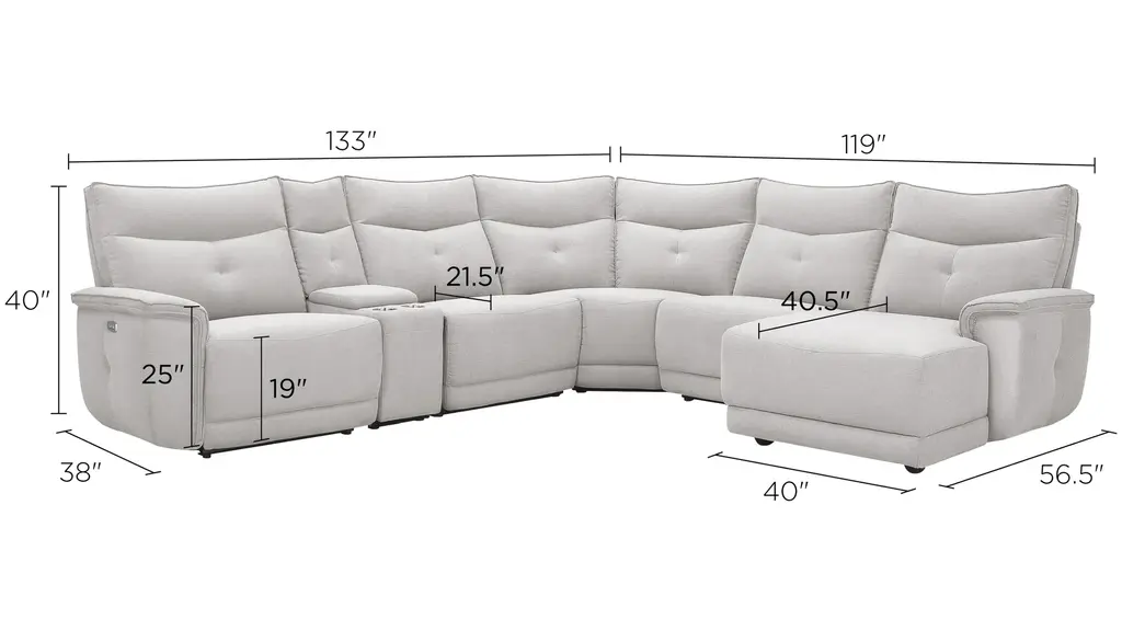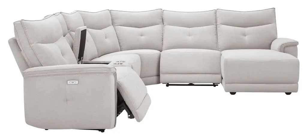 Beauty, versatility and comfort all rolled into one, the Graceland 6-pc. sectional truly shines. Its modern style boasts clean lines and luxuriously soft chenille upholstery. Although it is pretty to look at, Graceland also comes packed with function. You'll get features like cupholders, power-reclining seats and headrests and USB charging ports. No matter what, you'll find that the best part about Graceland is its flexibility when it comes to decorating.