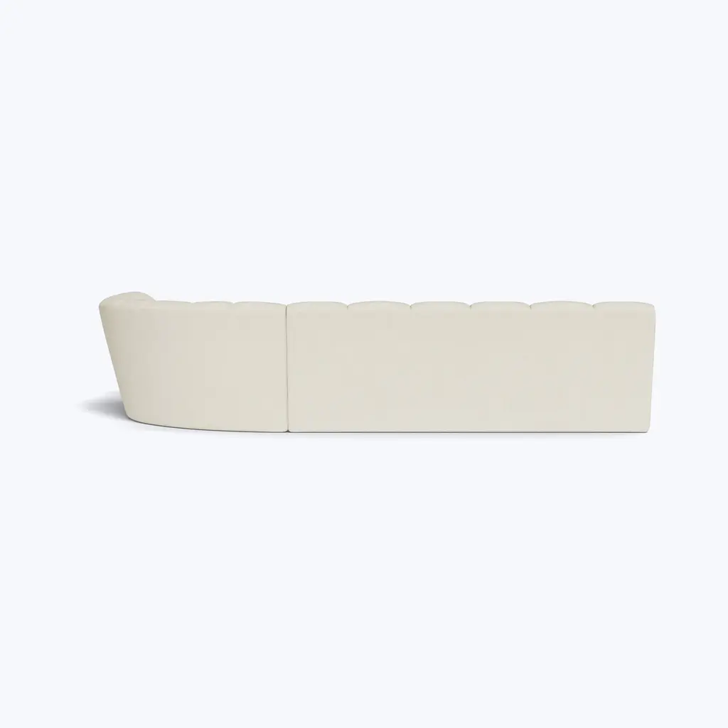 The Grove Street Sectional is a sculptural, armless three-piece modular sofa designed to elevate any living room with modern, luxurious comfort. Its serpentine, curved silhouette moves through a space with effortless flow. Soft and sculptural like a serpent, creating a dramatic yet inviting focal point. Crafted with deep, vertically channeled upholstery, Grove Street offers exceptional comfort and bold textural dimension. The plush channeled design, inspired by mid-century styling, adds both visual rhythm and full-body support, making it ideal for everyday lounging, entertaining, or creating a statement conversation area. Built on a sustainably sourced Goodwood frame and handcrafted in the USA, this modular three-piece sectional, featuring an armless chair, armless sofa, and curved wedge, lets you customize your layout to perfectly suit your space. Its flexible design adapts beautifully to open-plan living rooms, media spaces, or chic corporate environments. Personalize your Grove Street Sectional in a wide range of fabric or leather options, from rich velvets to durable performance weaves. Whether you want a bold statement color or a soft, neutral palette, you can create a piece that feels uniquely your own. Visit us at ABC Broadway to see the Grove Street Sectional in person and custom-order the configuration and dimensions that fit your home. Our specialists will guide you through fabrics, finishes, and scale to help you create the perfect serpentine sectional for your space. A blend of form, function, and modern artistry, the Grove Street Sectional transforms any room into a luxurious, lounge-worthy retreat.