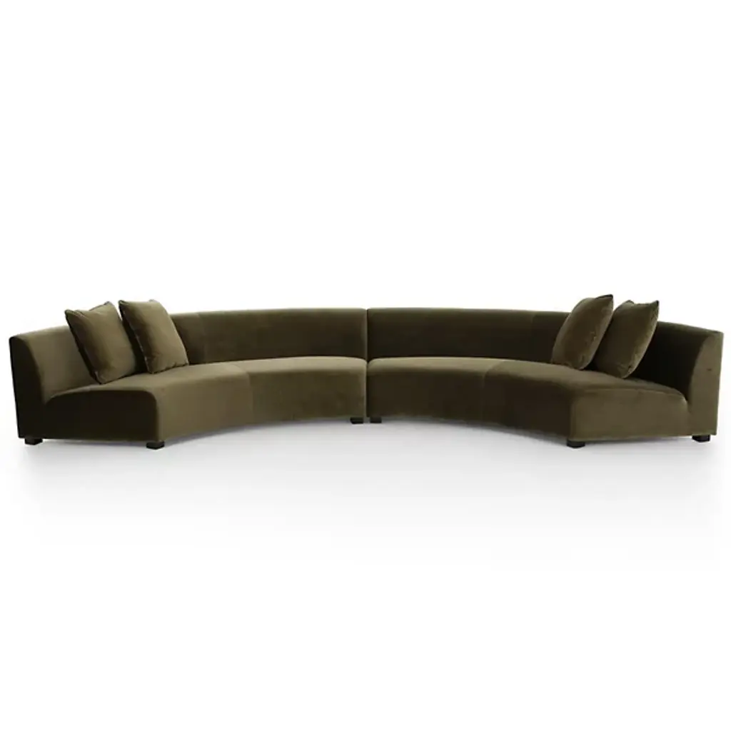 Hand-Tailored Curved Sectional Sofa In Mustard Yellow Velvet