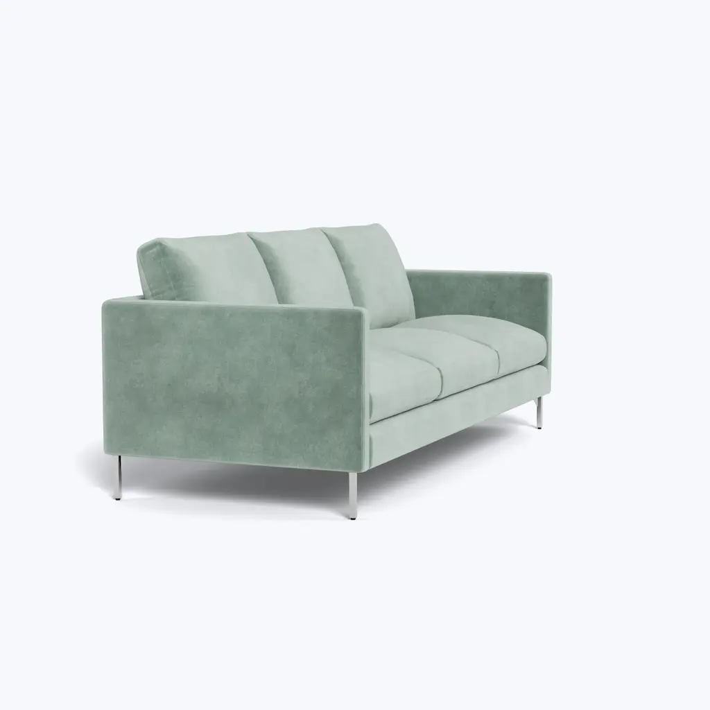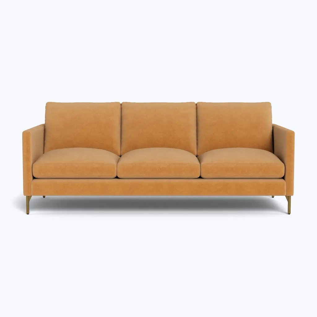 The Hannah Sofa, exclusively from ABC Carpet & Home, brings a sense of comfort and timeless sophistication to the home you’ve always longed for. This three-seat, 86-inch sofa offers the perfect blend of contemporary elegance and luxurious relaxation, making it an inviting place to unwind after a long day. With its slim track arms and refined silhouette, the Hannah Sofa is the ideal centerpiece for a living room designed around effortless style, modern grace, and understated refinement.Crafted with a sustainably sourced Goodwood frame, the Hannah Sofa blends eco-conscious craftsmanship with enduring quality. You can choose between elegant brass or polished steel legs, each offering a distinctive look that adds a touch of sophistication and contemporary flair. The sofa is available in over 80 fabric options—including rich velvets, soft linens, durable blends, and premium leather—so you can customize it to perfectly reflect your personal taste. Each piece is handcrafted to order and delivered within 8-10 weeks.Also available in this collection are a 76-inch two-seat apartment sofa, a 66-inch loveseat, a 124-inch sectional, a lounge chair, and an ottoman, giving you the freedom to expand your space with pieces that complement your lifestyle. The Hannah Collection invites you to sink into comfort while embracing the elegance and effortless design that defines your home.