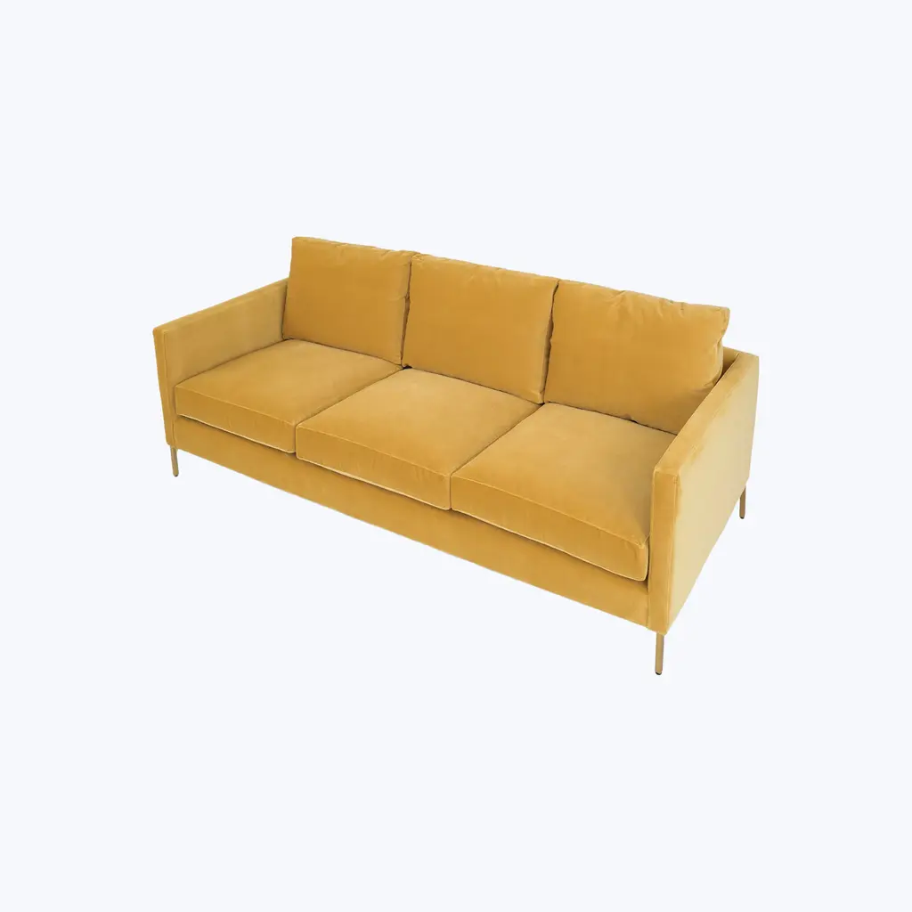 The Hannah Sofa, exclusively from ABC Carpet & Home, brings a sense of comfort and timeless sophistication to the home you’ve always longed for. This three-seat, 86-inch sofa offers the perfect blend of contemporary elegance and luxurious relaxation, making it an inviting place to unwind after a long day. With its slim track arms and refined silhouette, the Hannah Sofa is the ideal centerpiece for a living room designed around effortless style, modern grace, and understated refinement.Crafted with a sustainably sourced Goodwood frame, the Hannah Sofa blends eco-conscious craftsmanship with enduring quality. You can choose between elegant brass or polished steel legs, each offering a distinctive look that adds a touch of sophistication and contemporary flair. The sofa is available in over 80 fabric options—including rich velvets, soft linens, durable blends, and premium leather—so you can customize it to perfectly reflect your personal taste. Each piece is handcrafted to order and delivered within 8-10 weeks.Also available in this collection are a 76-inch two-seat apartment sofa, a 66-inch loveseat, a 124-inch sectional, a lounge chair, and an ottoman, giving you the freedom to expand your space with pieces that complement your lifestyle. The Hannah Collection invites you to sink into comfort while embracing the elegance and effortless design that defines your home.