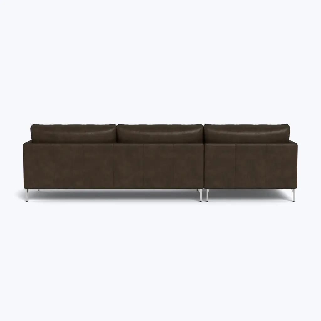 The Hannah Leather Sectional, exclusively from ABC Carpet & Home, combines the timeless appeal of leather with modern design, creating a luxurious centerpiece for any living space. The rich leather upholstery not only offers a sophisticated look but also develops a beautiful patina over time, giving the piece character as it ages. Natural markings, textures, and a soft sheen enhance the leather's unique charm, making the Hannah Sectional a stylish and durable choice for your home. Available in left arm facing or right arm facing configurations, this 124-inch sectional offers ample room for solo lounging or socializing with friends, making it a versatile addition to any space. The beauty of leather lies in its ability to age gracefully, gaining a rich patina as it’s used over time. As the leather softens, it showcases natural variations and markings, creating a distinctive and well-loved appearance that only enhances its elegance. This sectional’s premium leather upholstery not only looks stunning but also provides long-lasting durability, ensuring that the Hannah Leather Sectional remains a treasured part of your home for years to come. Crafted with a sustainably sourced Goodwood frame, the Hannah Leather Sectional exemplifies eco-conscious craftsmanship, ensuring it’s built to last. The modern design is enhanced by its streamlined, airy silhouette and slim track arms, lending a refined and contemporary touch to your living room or den. You can further personalize the look by choosing between polished brass or steel legs, which add a sleek and modern element to the sectional. With seven premium leather finishes available, you can tailor this piece to match your aesthetic while enjoying the luxurious look and feel of fine leather. Beyond its striking design, the Hannah Leather Sectional is crafted for comfort. Its deep, plush seating invites relaxation, making it the perfect spot for lounging or hosting guests. Whether you’re watching a movie, enjoying a nap, or having a gathering with friends, this sectional offers both luxury and practicality. Handcrafted to order and delivered to your home within 8-10 weeks, every detail of the Hannah Leather Sectional is meticulously crafted to ensure the highest level of quality and comfort. For a cohesive look, pair the Hannah Leather Sectional with other pieces from the Hannah Collection, including the ottoman or lounge chair, to create a beautifully curated living space. The Hannah Leather Sectional offers the perfect combination of modern design, timeless leather appeal, and unmatched comfort, making it an essential piece for any contemporary home.