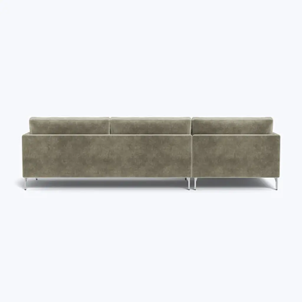The Hannah Sectional, exclusively from ABC Carpet & Home, combines modern elegance with ultimate comfort, making it the perfect centerpiece for any living space. Available as either a left arm facing or right arm facing configuration, this sectional is designed to fit seamlessly into your home, offering both style and versatility. The expansive 124-inch Sectional offers the perfect spot to stretch out solo for a nap or gather with friends for laid-back lounging.Crafted with a sustainably sourced Goodwood frame, the Hannah Sectional exemplifies eco-conscious craftsmanship and long-lasting quality. Its slim track arms and sleek silhouette add a refined, contemporary touch to your living room or den. Choose between polished brass or steel legs to enhance the sectional’s modern appeal, and select from over 80 customizable fabric options—including plush velvets, soft linens, performance blends, and premium leather—to create a piece that suits your personal style.Whether you’re creating a cozy space to relax or need a stylish sectional for entertaining, the Hannah Sectional is handcrafted to order and delivered within 8-10 weeks, ensuring luxury and comfort in every detail. Pair it with other pieces from the Hannah Collection, such as the ottoman or lounge chair, to create a look that works perfectly with your lifestyle.