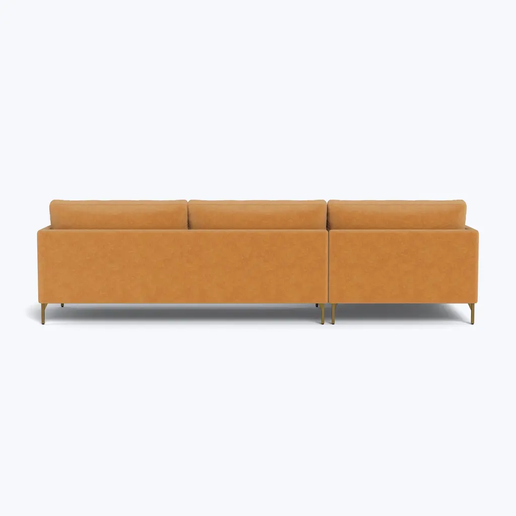 The Hannah Sectional, exclusively from ABC Carpet & Home, combines modern elegance with ultimate comfort, making it the perfect centerpiece for any living space. Available as either a left arm facing or right arm facing configuration, this sectional is designed to fit seamlessly into your home, offering both style and versatility. The expansive 124-inch Sectional offers the perfect spot to stretch out solo for a nap or gather with friends for laid-back lounging.Crafted with a sustainably sourced Goodwood frame, the Hannah Sectional exemplifies eco-conscious craftsmanship and long-lasting quality. Its slim track arms and sleek silhouette add a refined, contemporary touch to your living room or den. Choose between polished brass or steel legs to enhance the sectional’s modern appeal, and select from over 80 customizable fabric options—including plush velvets, soft linens, performance blends, and premium leather—to create a piece that suits your personal style.Whether you’re creating a cozy space to relax or need a stylish sectional for entertaining, the Hannah Sectional is handcrafted to order and delivered within 8-10 weeks, ensuring luxury and comfort in every detail. Pair it with other pieces from the Hannah Collection, such as the ottoman or lounge chair, to create a look that works perfectly with your lifestyle.
