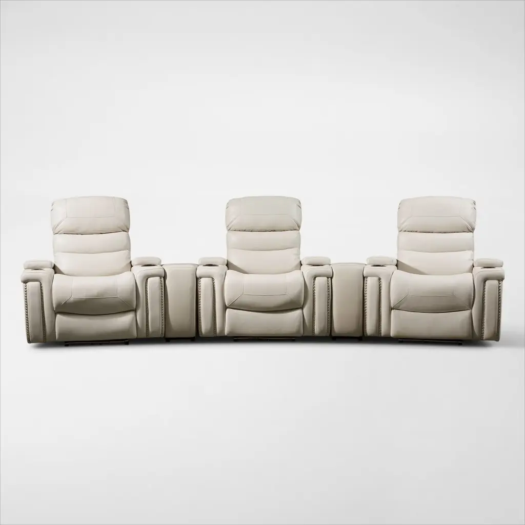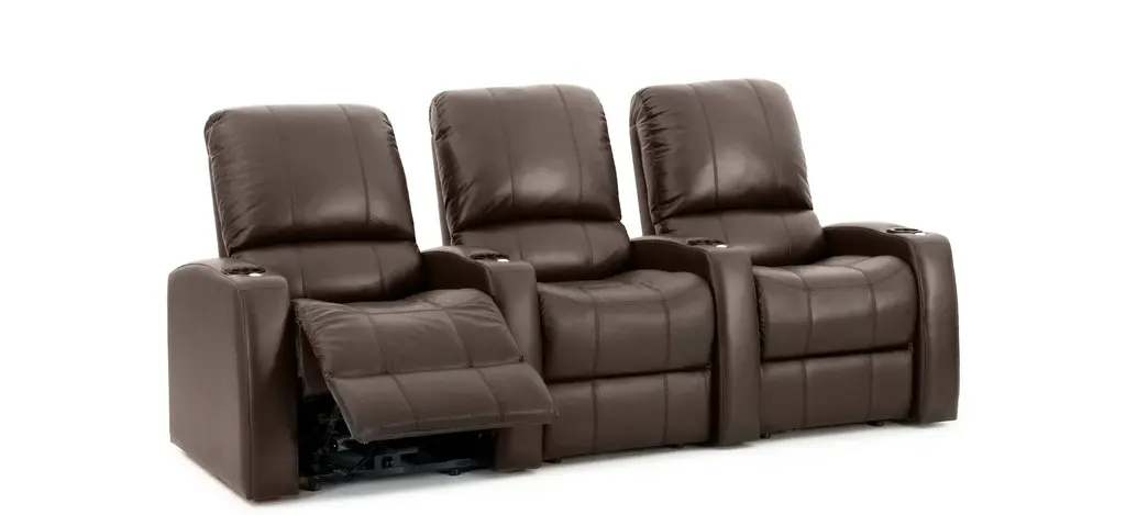 The Harkins 3-pc. leather reclining sectional sofa brings the home theater experience to a new level. This sofa is made of premium top-grain brown leather and extends out with a chaise style foot rest. This sectional offers a layer of gel-infused memory foam for unparalleled comfort. The interior seat padding is made with high resiliency foam that is designed to maintain its form even after years of regular usage.