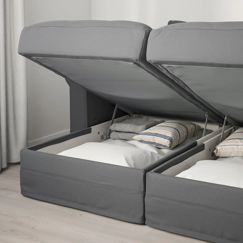 HÄRLANDA Sectional, 4-seat - with chaise/Ljungen medium gray. HÄRLANDA sofa takes your comfort to a new level with deep pocket spring seat cushions, high resilience foam, and a top layer of polyester fibers that makes them soft to sink into.