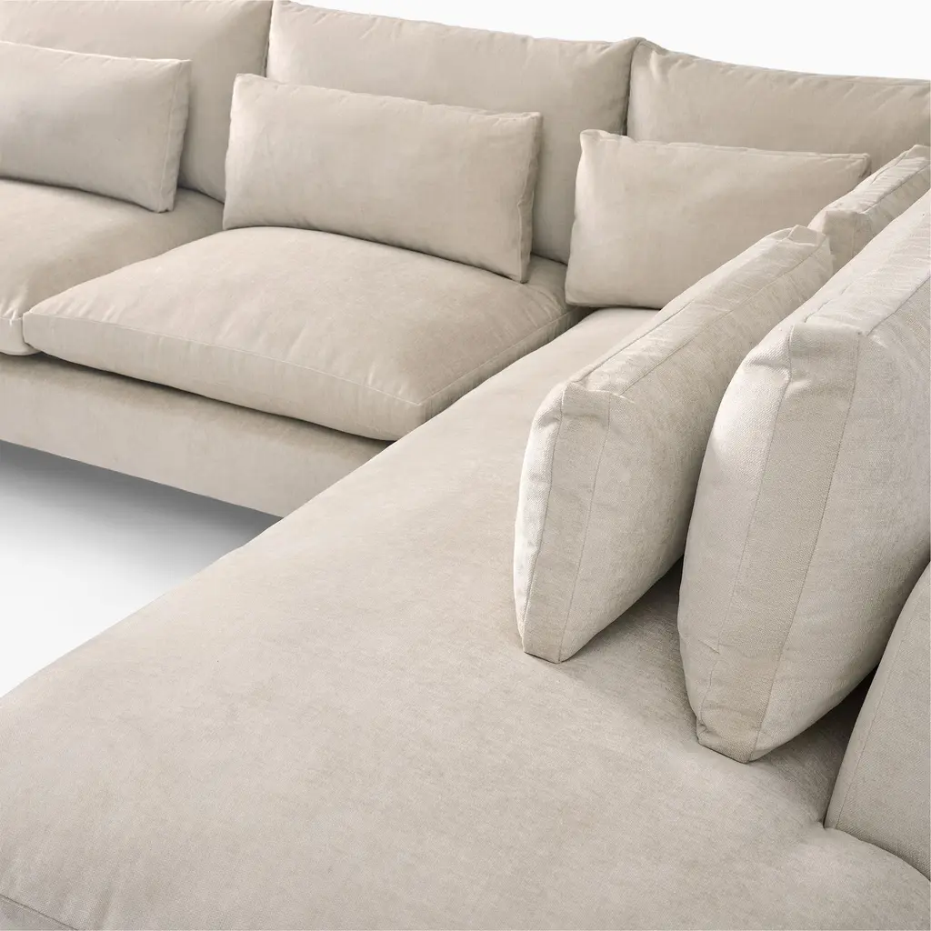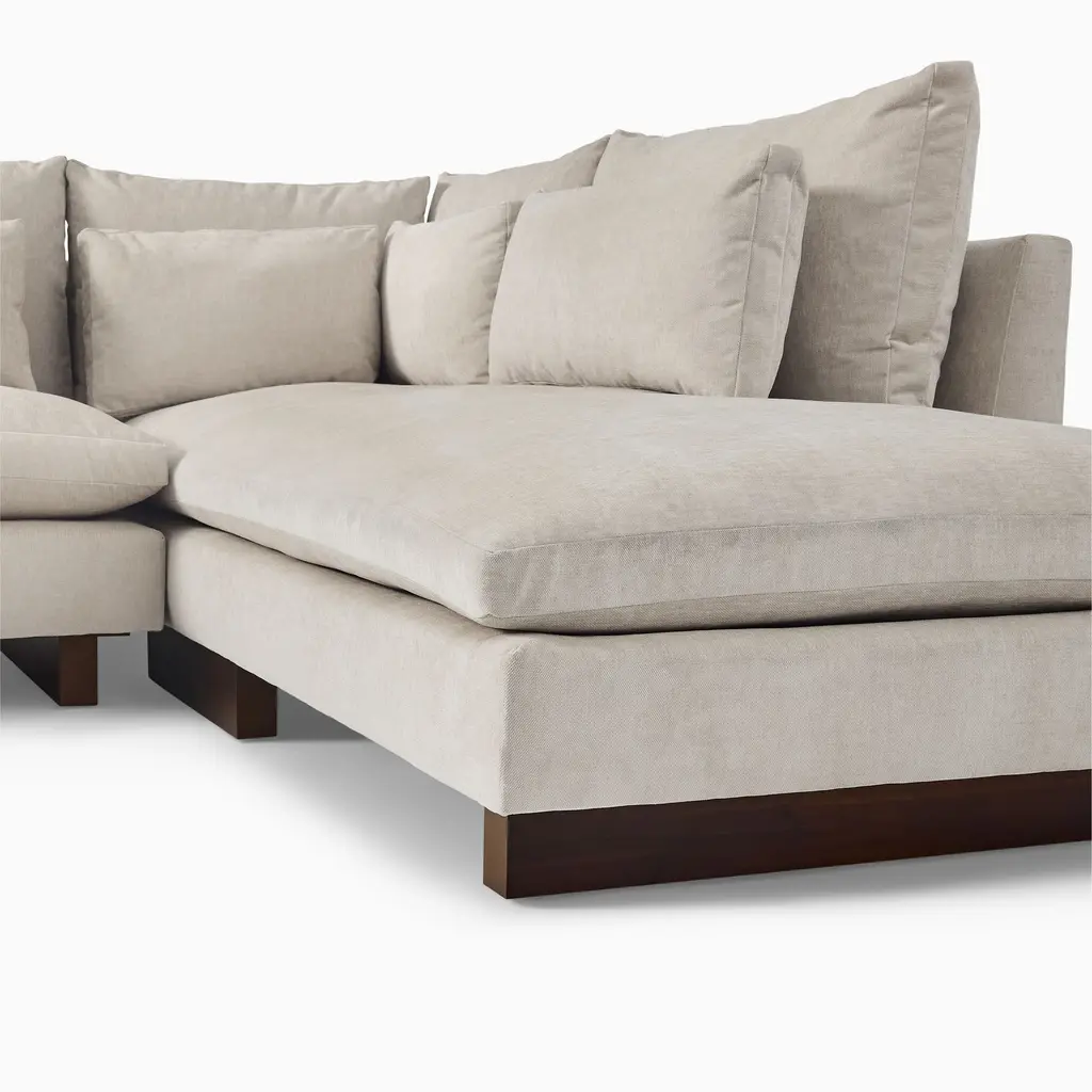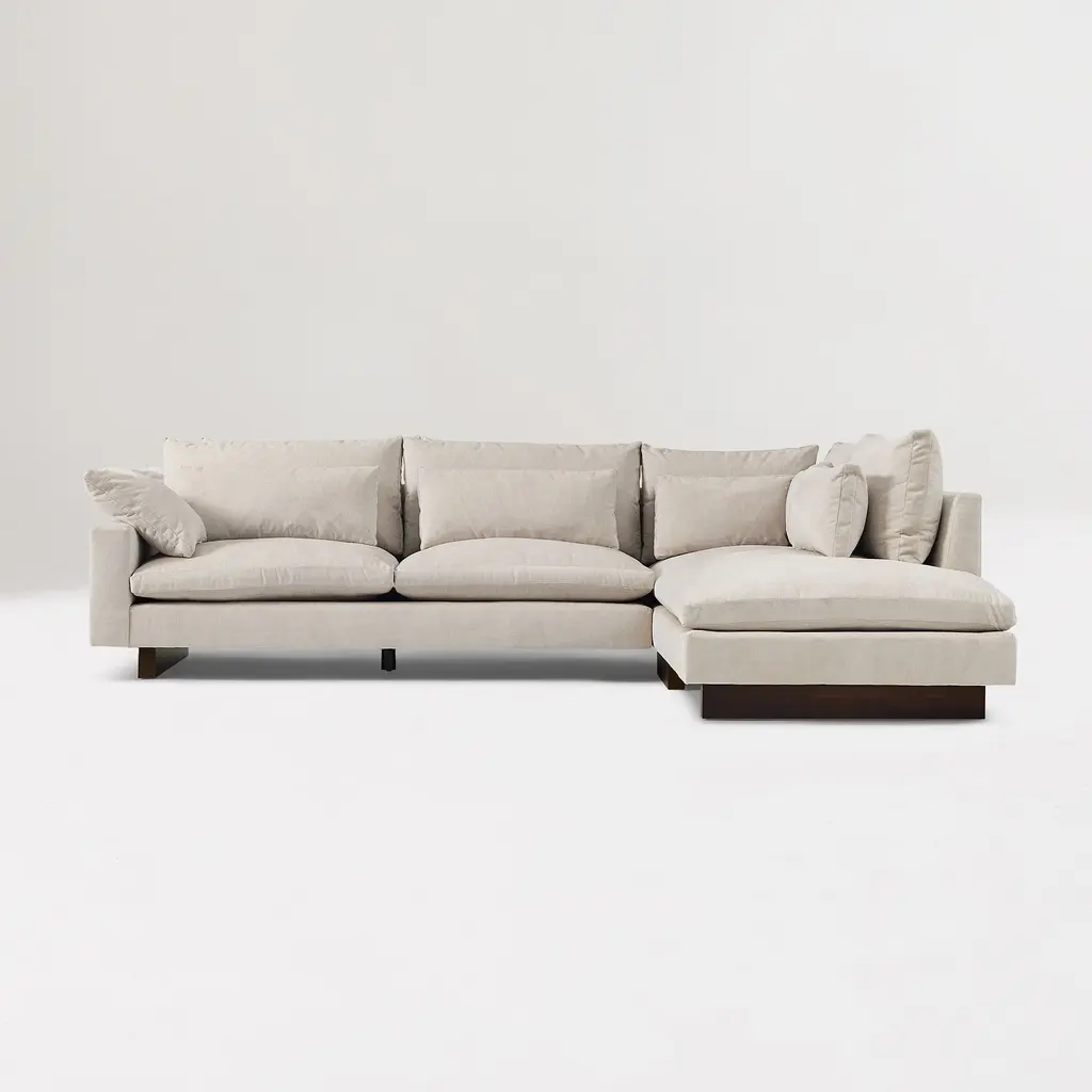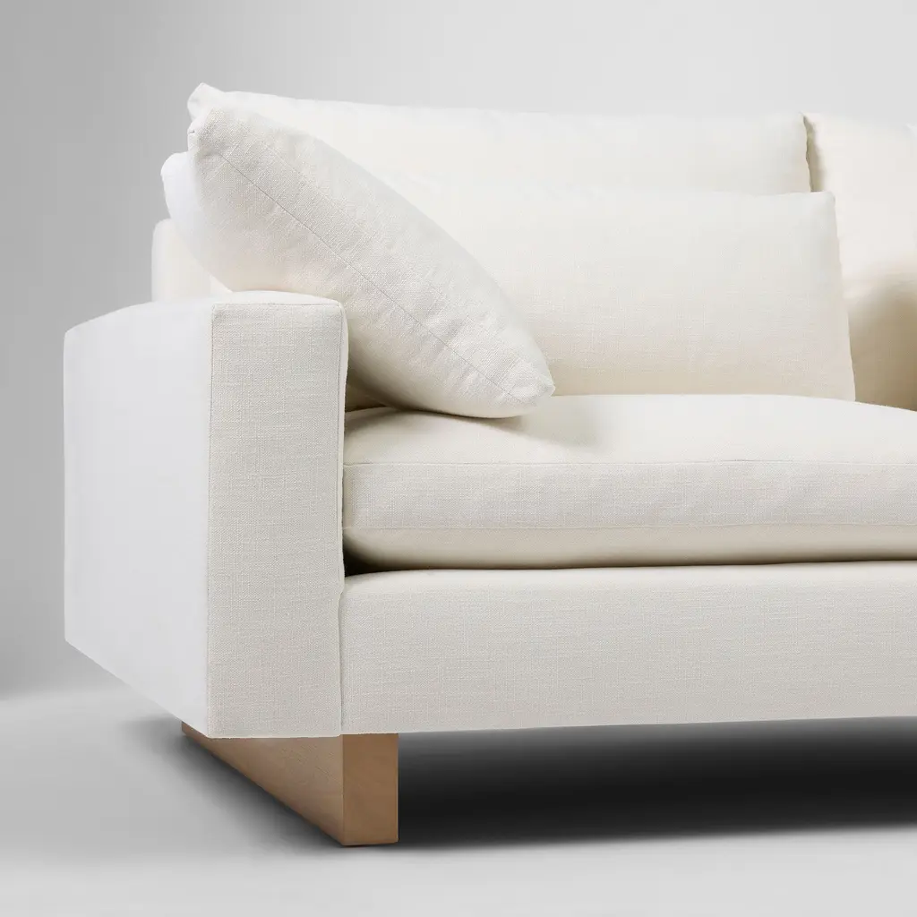 This modern sectional is all about comfort. Pillowy-soft cushions top the spacious body. Hand-built frames with hand-finished upholstery. Several sizes to choose from.