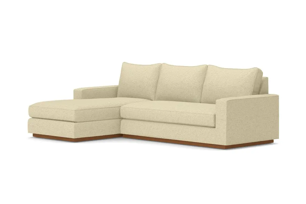 Do you think being a harpist is suave and sexy? You will after you've seen the Harper two-piece sectional! You don't need to know how to pluck a harp to know sleek modern design and classic comfort. The silhouette has just the right number of curves to add character while remaining stylish over time. A solid wood base gives it a full profile with fewer gaps to distract visitors or lose the TV remote under. With cleanable fabrics, reversible seat cushioning and 2.0 density memory foam, you can count on the Harper for coziness no matter how many people pile on. Since each Harper sectional sofa is custom-made, you have control over many aspects of your order. Pick a right-arm facing sectional or a left-arm sectional depending on your preference. Choose from more than 30 hypo-allergenic fabrics and match them with a natural, pecan or dark espresso base finish. If you can't decide on a fabric, request some free swatches. You can get the Harper in a sleeper model as well.