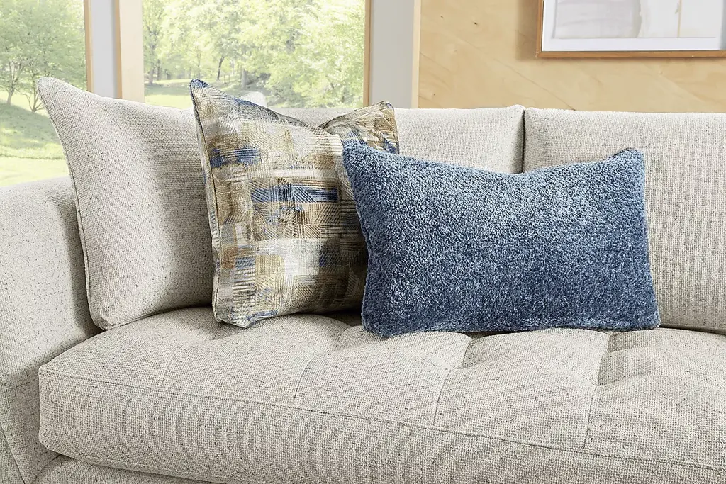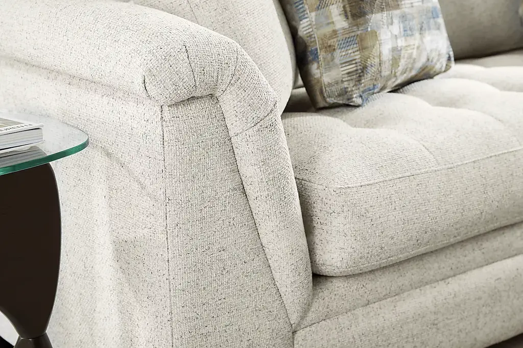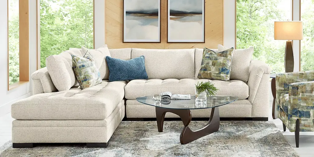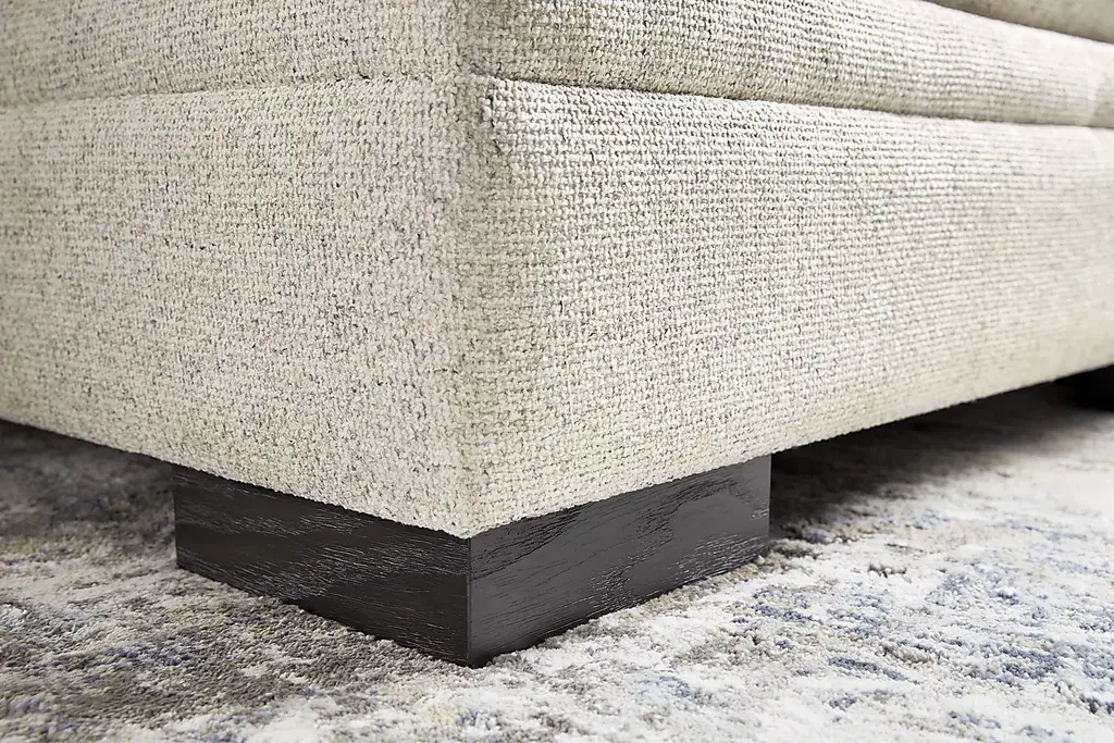From spending time with family to cuddling up with your favorite novel, the Harper sectional from Cindy Crawford Home helps transform the space you spend so much time in into a world of peace and tranquility. Designed with a sleek, contemporary appearance, this collection features eye catching angled arms and tufted bench-style seat cushions and is upholstered with beige fabric that has a soft, velvety texture. Woodblock legs finished in a dark color ground the overall look with a sumptuous prestige. The sectional's left arm facing chaise and right arm facing loveseat come with matching toss pillows that add an extra flourish of upscale uniformity to the piece. Upholstery: 100% Polyester.