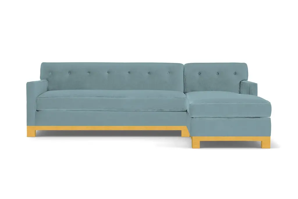 Kyle Schuneman is one of today's hottest designers and when we invited him to partner with us on an upholstery collection, we knew the results would be amazing. So we present to you the Harrison Ave 2pc Sectional, a fitting display of retro style with all the modern amenities. It boasts a tight tufted back and smooth silhouette, while offering you the highest level of comfort. Made in the USA, this sectional sofa features unmatched quality at an affordable price, so you can enjoy your midcentury modern sectional without emptying your bank account. We offer you a choice of over 50 fabrics, so have fun browsing our selection. If you can't decide, we're more than happy to send you free fabric swatches for an easy comparison. Every room needs a retro flair and the Harrison Ave 2pc Sectional won't disappoint. This tight back tufted sectional keeps a clean silhouette while still being comfortable.