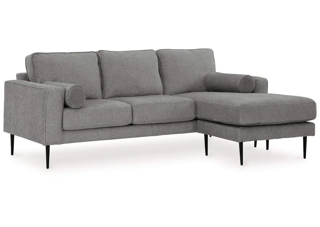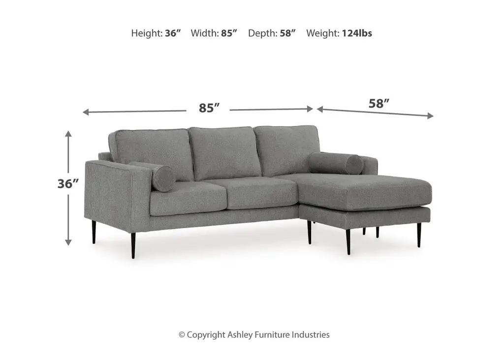 Simple comfort meets modern function in the Hazela sofa chaise. An apt addition to apartments and other small spaces, this slim-profiled piece welcomes you with its cozy character. A subtle chevron pattern on the cushions refresh the classic neutral hue, elevating the look while still suiting a variety of styles. Black accent legs add a dash of contemporary flair. Weight 124.000 lbs. (55.8kgs.)