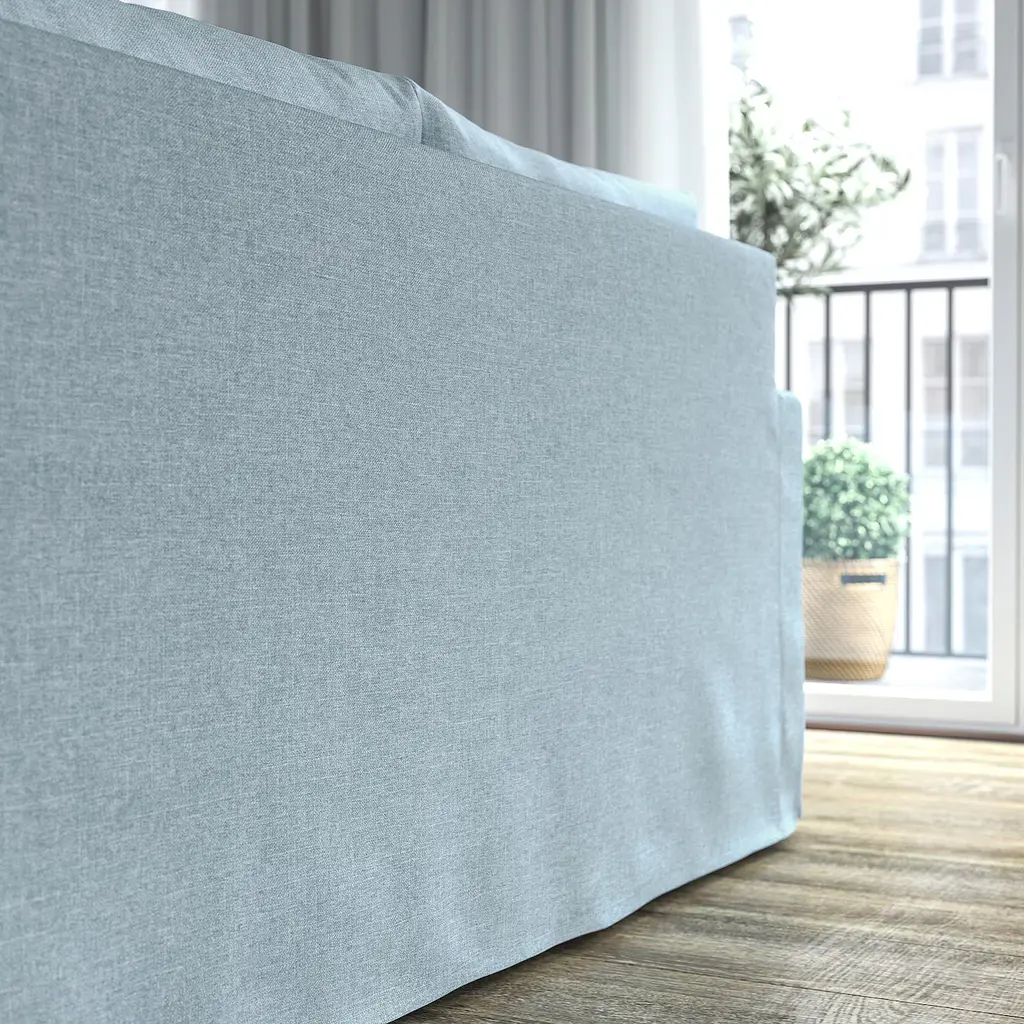 HYLTARP Sofa w chaise, left - Kilanda pale blue. Skillful craftsmanship and a perfect fit means that the sofa will always shows off its best side. The Kilanda fabric with a mélange effect is made of at least 90 percent recycled polyester and has a soft surface.