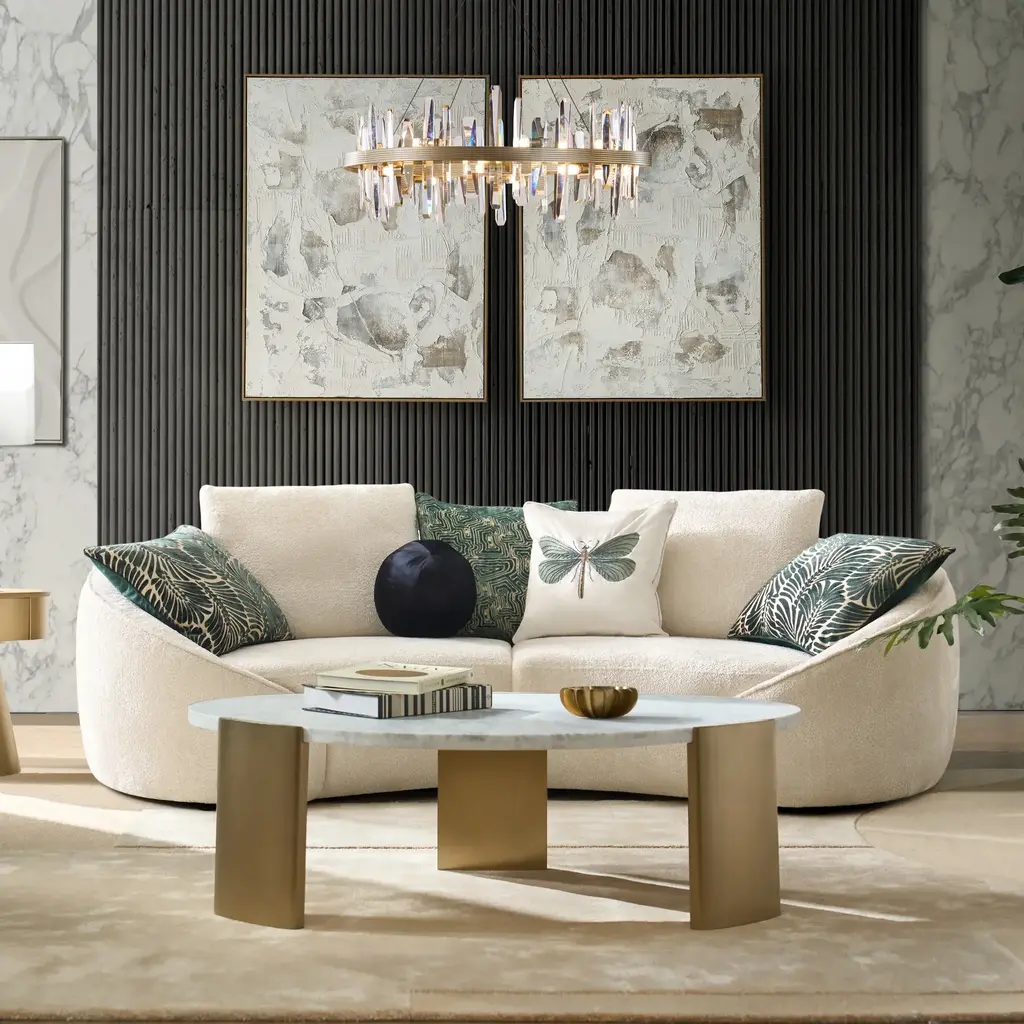 Enhance your living room with the Irene Sectional, a stunning blend of comfort and contemporary design. Fully upholstered in luxe chenille fabric, this sectional features high-density foam cushioning for a truly superior sofa. Its elegant curved design and spacious seating make it an ideal spot for intimate gatherings and lively entertaining alike. Ideal for modern living rooms, the Irene Sectional is perfect for creating a comfortable and inviting space for family gatherings, hosting guests, or simply relaxing. Its blend of luxurious materials and thoughtful design ensures it will be a centerpiece in your home for years to come.