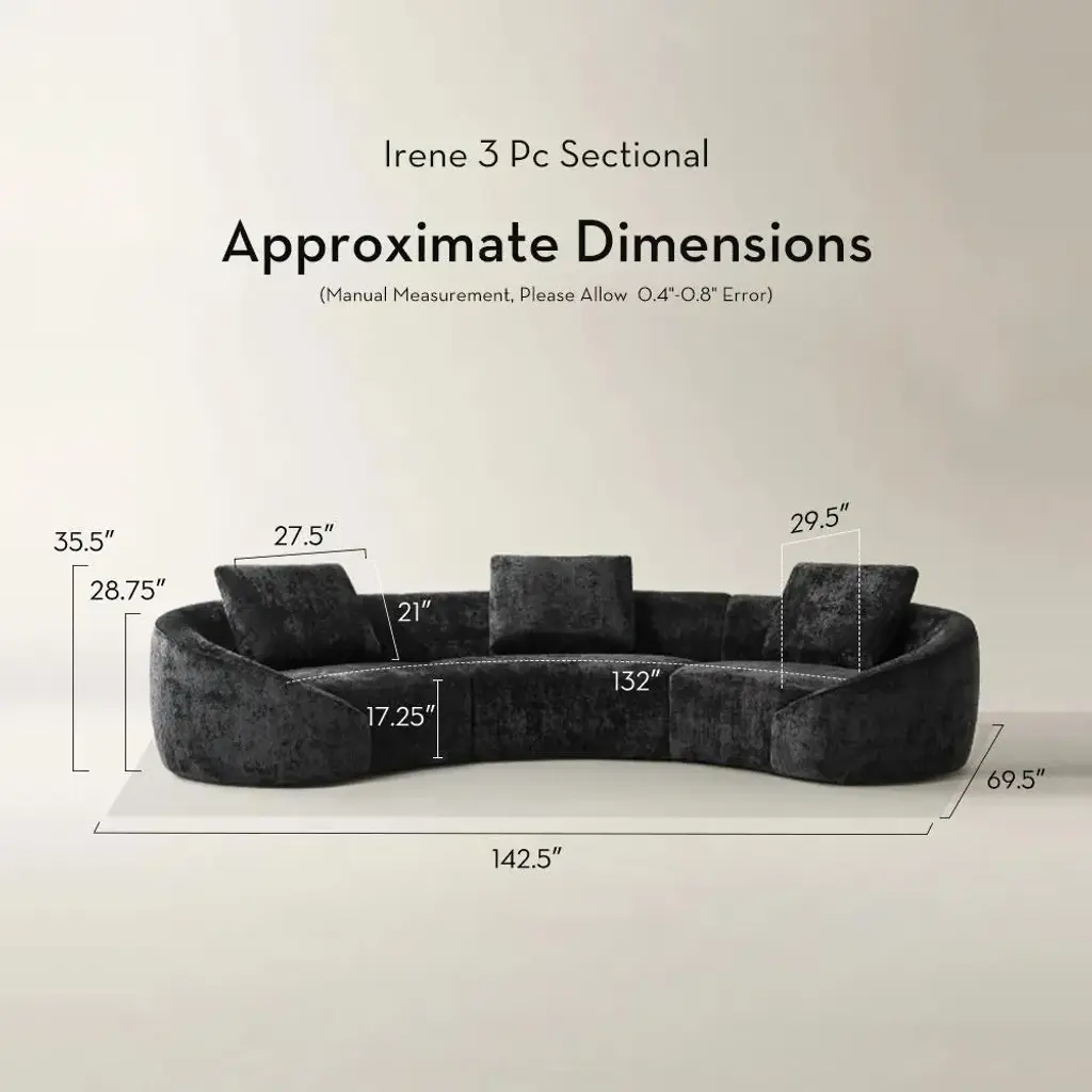 Enhance your living room with the Irene Sectional, a stunning blend of comfort and contemporary design. Fully upholstered in luxe chenille fabric, this sectional features high-density foam cushioning for a truly superior sofa. Its elegant curved design and spacious seating make it an ideal spot for intimate gatherings and lively entertaining alike. Ideal for modern living rooms, the Irene Sectional is perfect for creating a comfortable and inviting space for family gatherings, hosting guests, or simply relaxing. Its blend of luxurious materials and thoughtful design ensures it will be a centerpiece in your home for years to come.