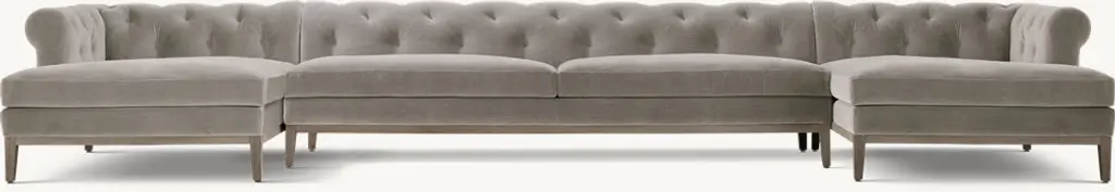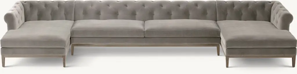 A contemporary take on a classic silhouette, our minimalist Chesterfield exudes understated elegance. Its slender legs support an expansive frame whose clean lines are complemented by a luxuriously hand-tufted back. Handcrafted in the USA. Sectional components are available individually, in a range of depths and sizes. ALSO AVAILABLE IN LEATHER SHOP THE ENTIRE COLLECTION