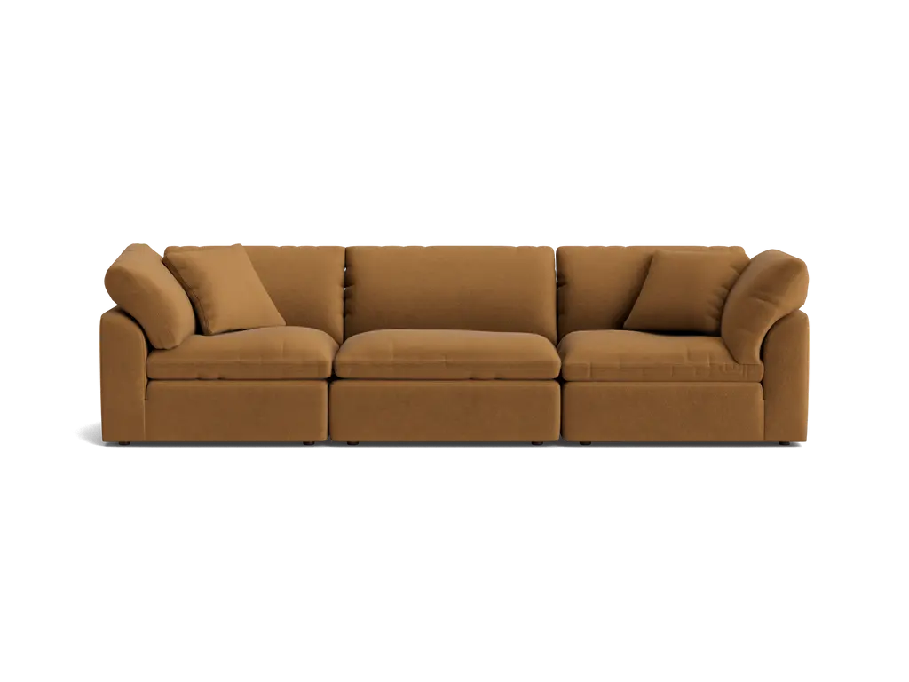 James beautifully marries modern design with a transitional feel. Its to-the-floor platform and hidden legs are sleek, while subtle crowns in the seat and arms keep it soft. In keeping with its linear design, James' wide arms and back frame are finished with structural piping for a balanced look. Top it all off with cozy side cushions, and you have yourself the modern, lounge-ready sofa of your dreams. Contract grade.