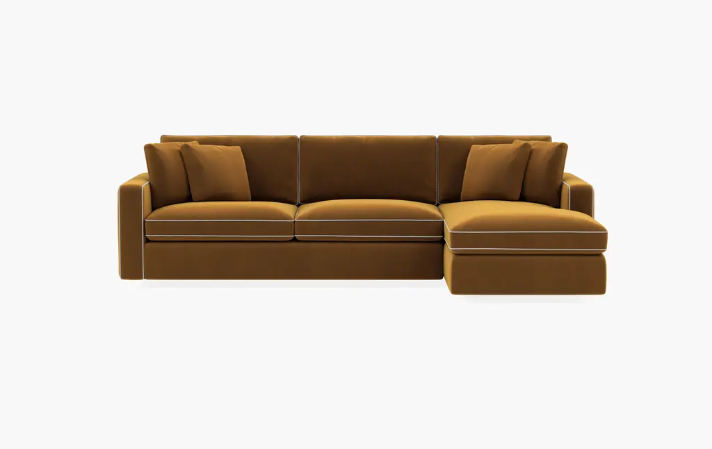 James beautifully marries modern design with a transitional feel. Its to-the-floor platform and hidden legs are sleek, while subtle crowns in the seat and arms keep it soft. In keeping with its linear design, James' wide arms and back frame are finished with structural piping for a balanced look. Top it all off with cozy side cushions, and you have yourself the modern, lounge-ready sofa of your dreams.