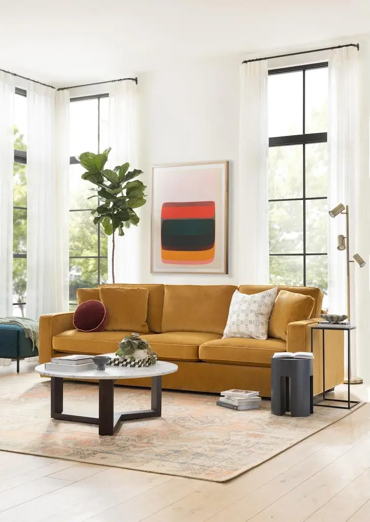 James beautifully marries modern design with a transitional feel. Its to-the-floor platform and hidden legs are sleek, while subtle crowns in the seat and arms keep it soft. In keeping with its linear design, James' wide arms and back frame are finished with structural piping for a balanced look. Top it all off with cozy side cushions, and you have yourself the modern, lounge-ready sofa of your dreams. Contract grade.