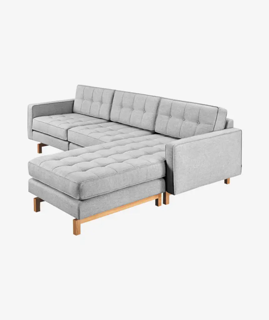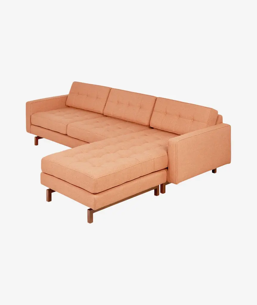 A modern update to the classic Gus* Modern Jane Series, the Jane 2 Bi-Sectional retains the iconic, mid-century look while adding contemporary enhancements. It has been cleverly designed so that it can be configured with the chaise on the left OR the right, depending on your floorplan. If your needs change, simply move the chaise and readjust the cushions to convert the design. Piped upholstery edges and button-tufted cushions create photogenic surface details that are enhanced by Jane 2’s new, more refined proportions. A new wood base (available in light or dark wood finish) is inset on each piece, creating a sense of weightlessness that maximizes light and space. The frames are constructed with kiln-dried 100% FSC®-Certified hardwood in support of responsible forest management.