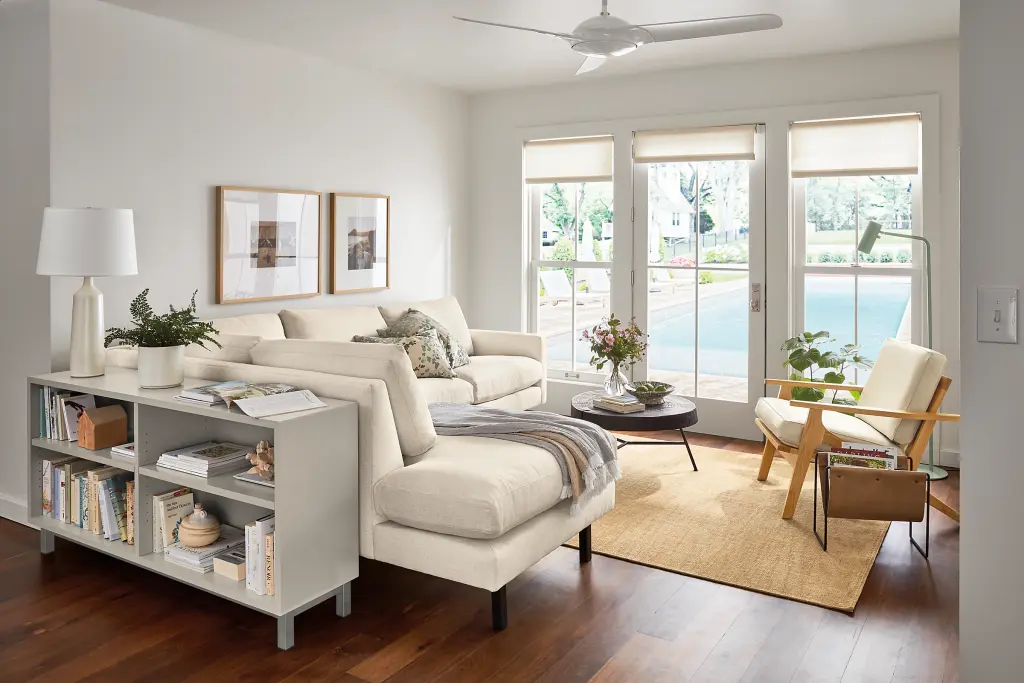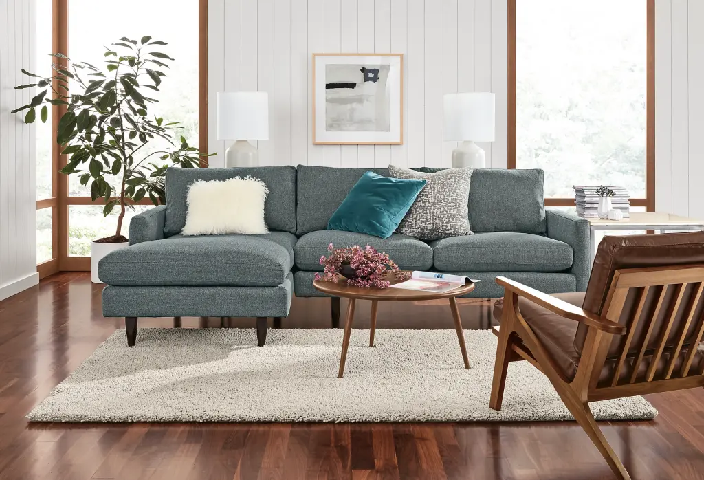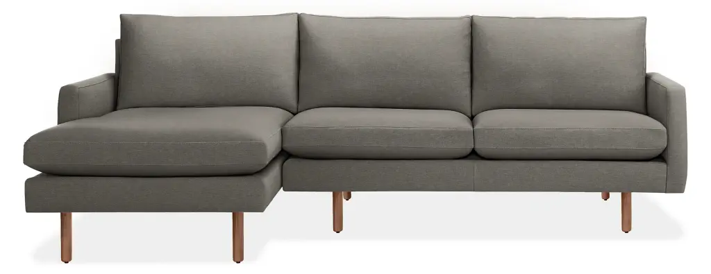 Mid-century styling meets modern comfort in the Jasper sectional. Narrow arms make the most of the seating space, while elegant legs give Jasper a light profile. Plush, blend-down cushions envelop you in comfort and the smaller scale frame won't overwhelm your space.