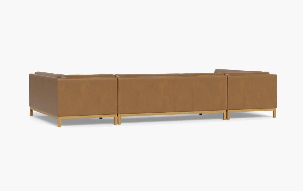 Like the perfect pair of relaxed-fit jeans, the Jasper leather u-sectional combines comfort and style. We consider it our ultimate lounging u-sectional. Clean lines, including a simple, solid wood rail, keep the overall design sleek with a hint of California-cool. The layered cushion is soft, yet supportive, and can be upgraded for an extra-soft sit. With so many configuration options, the possibilities are endless. We love leather for the rich, unique patina every hide develops over time. Our leathers arrive with built-in character (like the occasional stretch mark or nick). As leather ages, it develops a worn-in look that reflects a life well-lived in your space. Remember: the lighter the leather, the more prominently new scuffs will show. If in doubt, go darker. Contract grade.