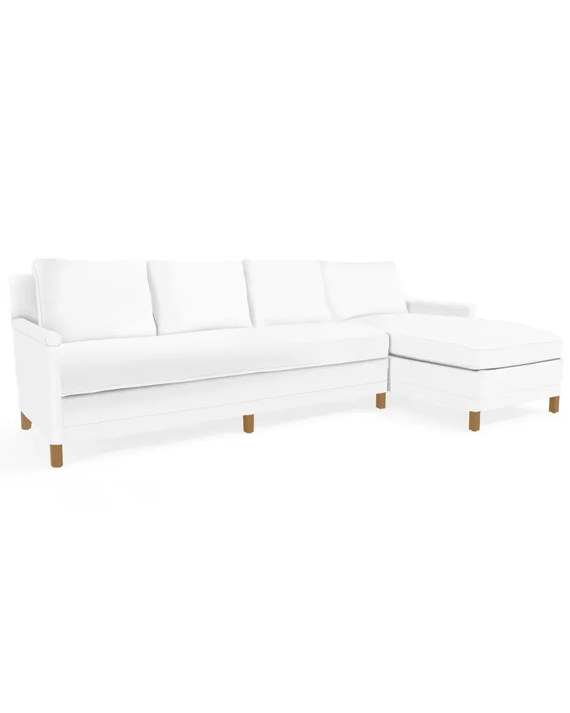 Like the perfect pair of relaxed-fit jeans, the Jasper sectional combines comfort and style. We consider it our ultimate lounging sectional. Clean lines, including a simple, solid wood rail, keep the overall design sleek with a hint of California-cool. The layered cushion is soft, yet supportive, and can be upgraded for an extra-soft sit and fully reversible cushion. With so many configuration options, the possibilities are endless. Right or left chaise, which to choose? It all depends on the layout and traffic pattern of your space, and we recommend placing the chaise on the side with less traffic. The difference between a right and left chaise? Imagine you're standing in front of your sectional, facing it directly. A right chaise will be on your right side and a left chaise will be on your left.