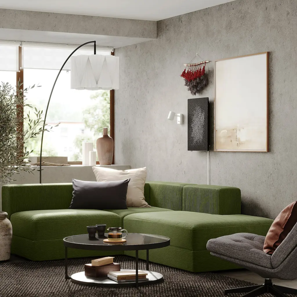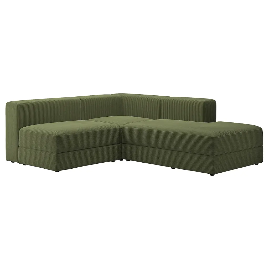 JÄTTEBO Mod corner sofa, 2.5-seat w chaise - right/Samsala dark yellow-green. JÄTTEBO modular sofa has a simple shape with clean lines and is soft, comfortable – and practical with storage under the seat. 10-year guarantee. Read about the terms in the guarantee brochure.