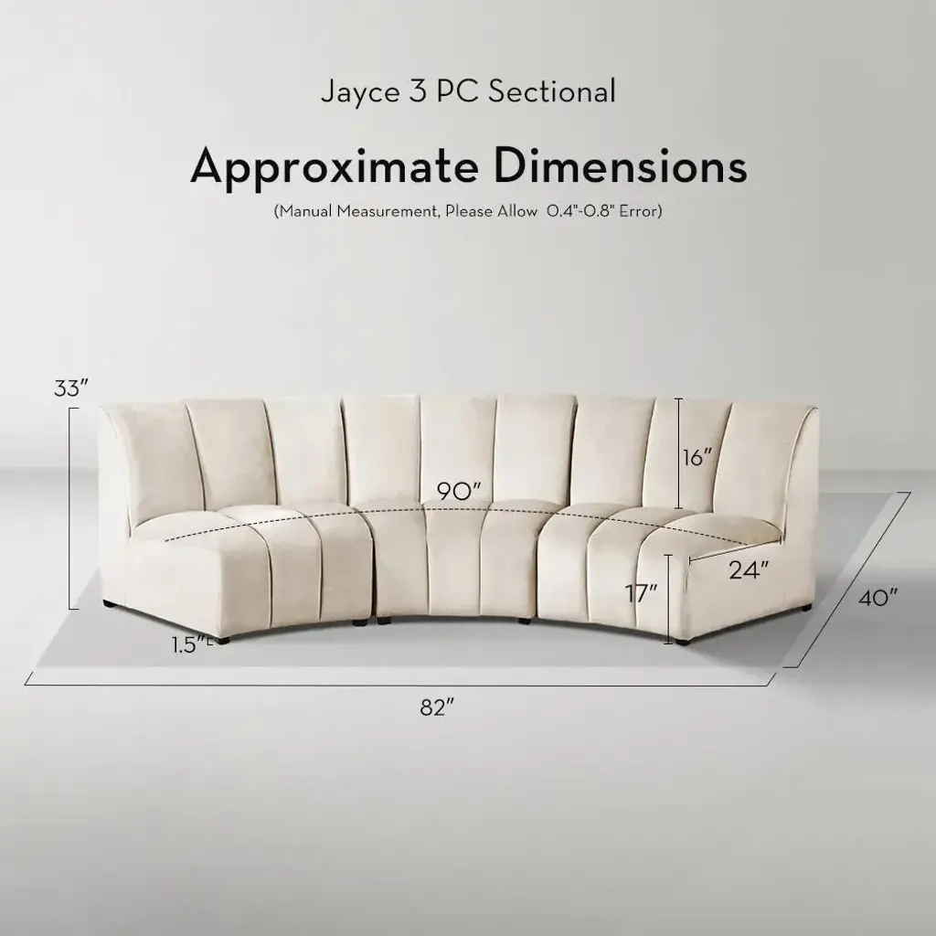 Comfort can be classy and stylish, and Jayce is proof. With its curved, armless silhouette and deep channel-tufted upholstery filled with plush padding, this sectional brings modern style and luxurious comfort to the living room. Shown in Velvet Ivory.Z Gallerie Exclusive