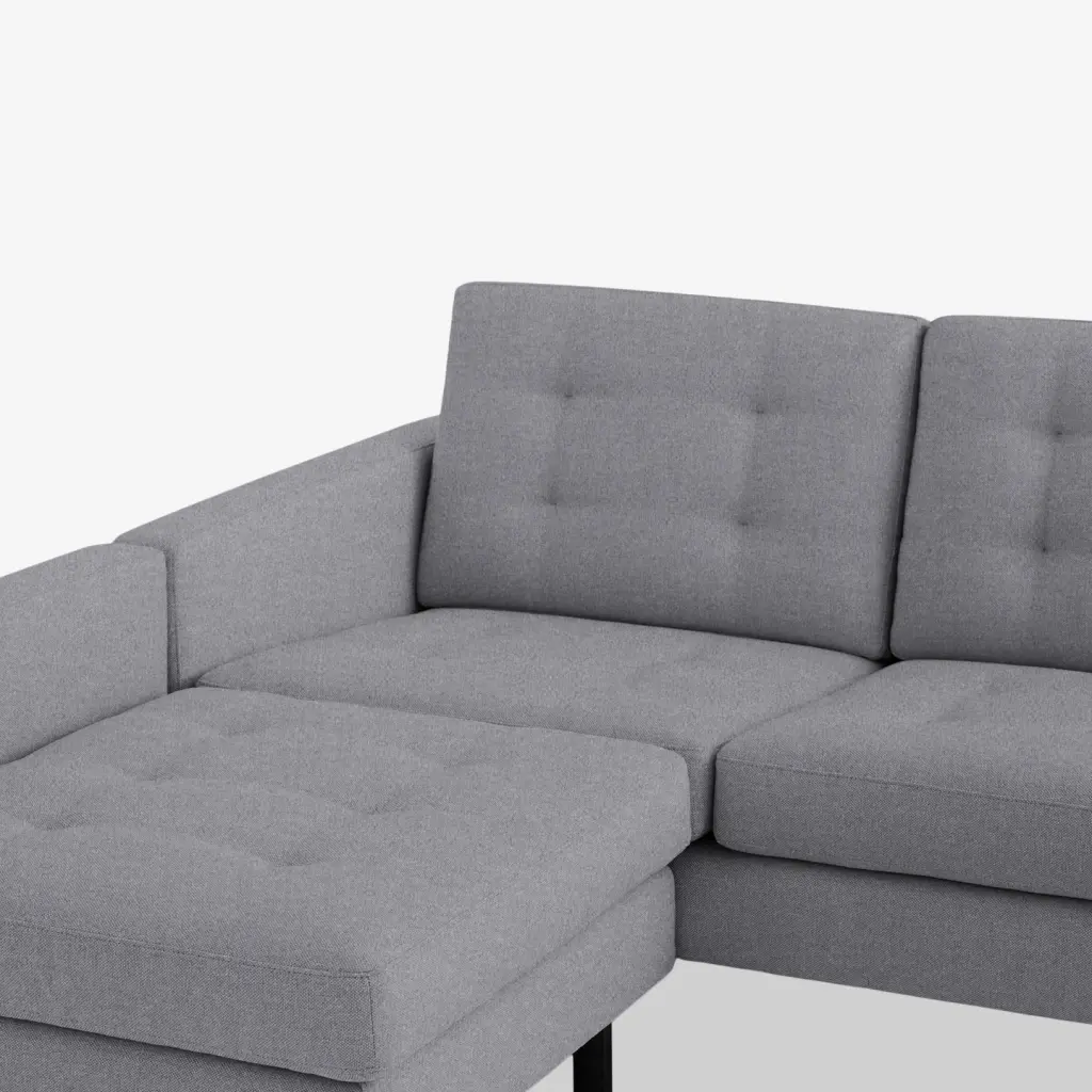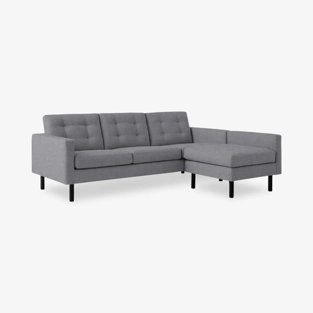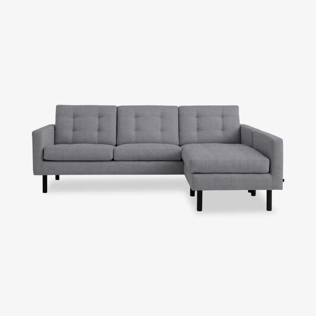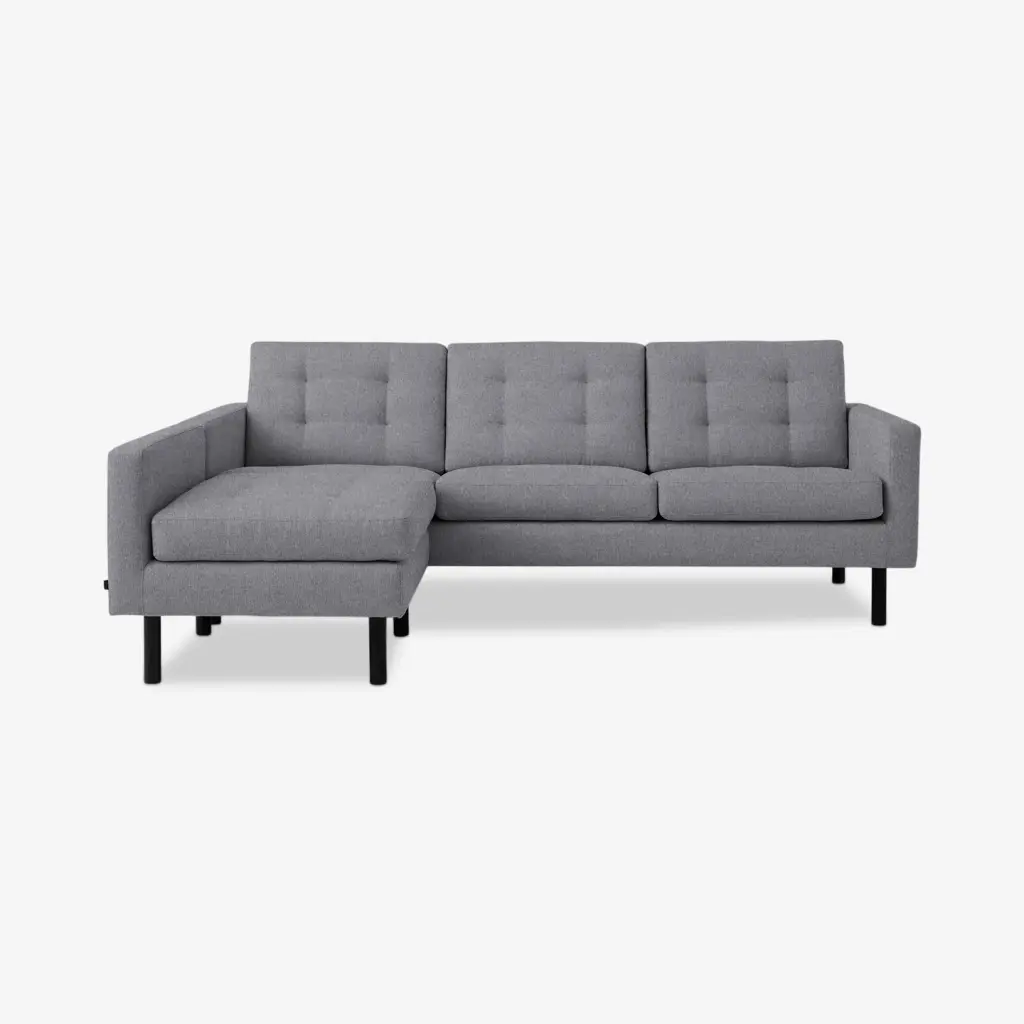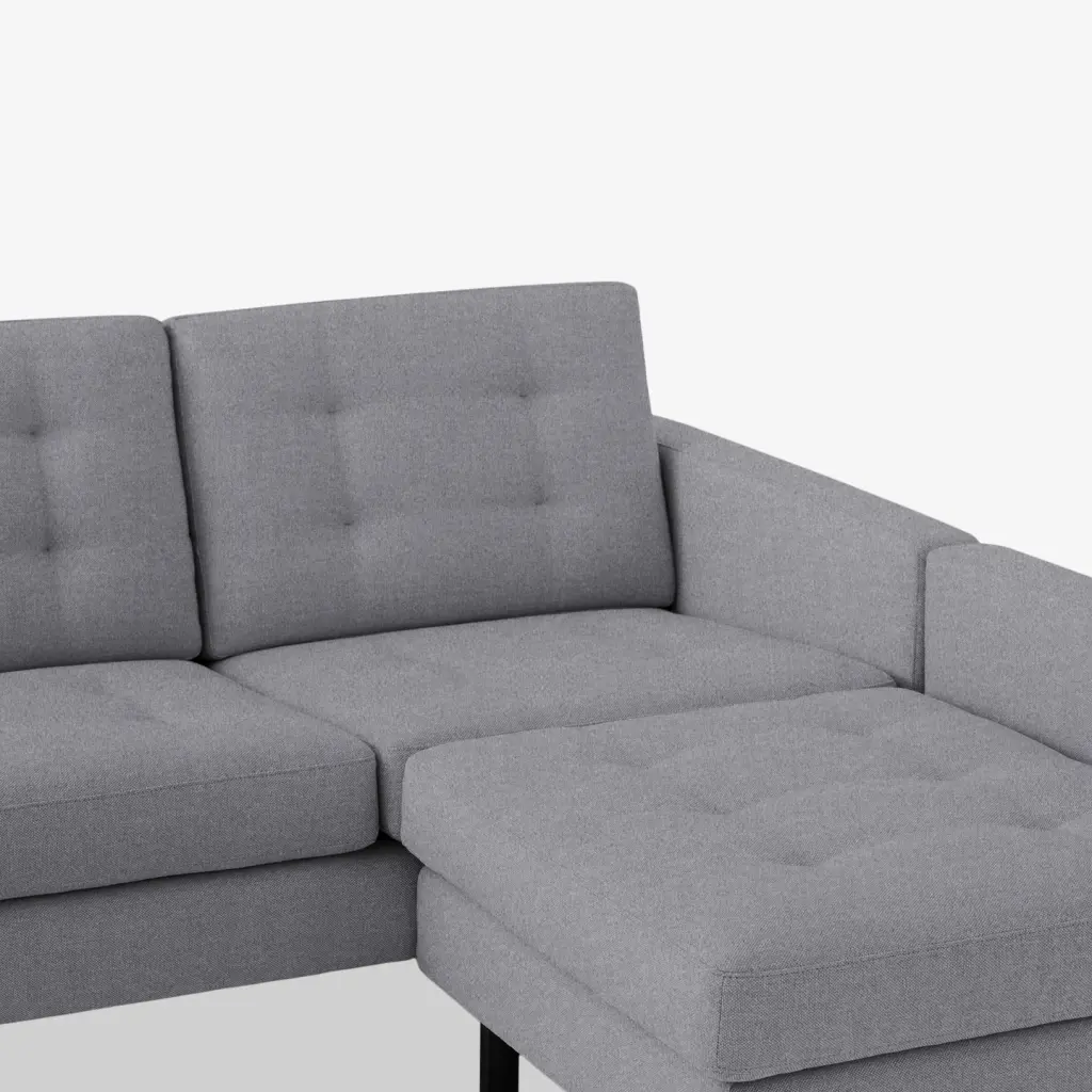 The Joan Sofa Sectional is playful in shape, yet contemporary with its tailored blind-tufted seating and back. Featuring a universal chaise that can switch from right to left facing, high density, high resiliency foam cushions and sophisticated leg options, the Joan is a great option for first-time buyers without compromising quality and design.