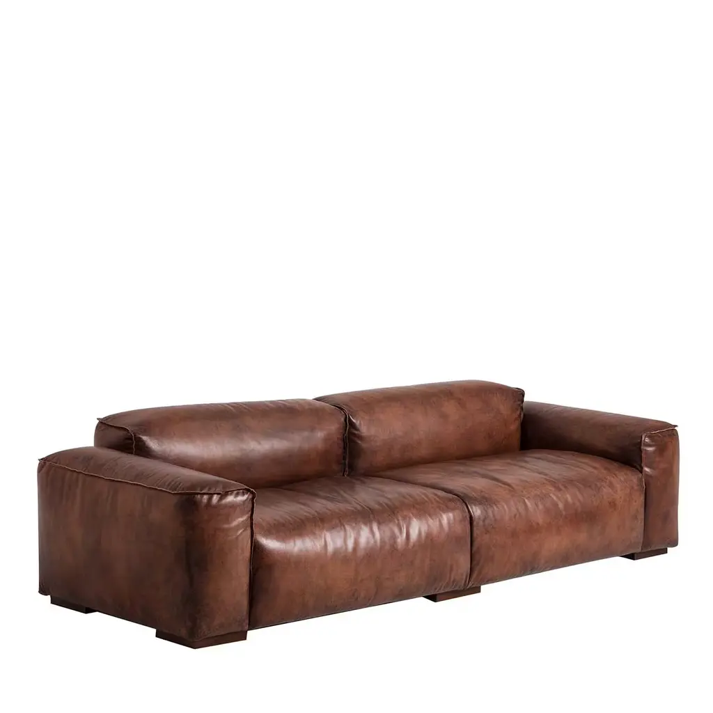 Comfortable, handsome, and practical: This sofa has it all. Each of its two seats can recline independently of the other with just a push of a hidden button, and generous foam, feather, and fiber cushioning adds to the long-lasting comfort. The broad arms are ideal for balancing a snack, while the top-grain leather has been slightly distressed for added allure. What's more, the sofa is designed so that, unlike most other recliners, you can place it directly against a wall. Comes with a 9"5' power cord.