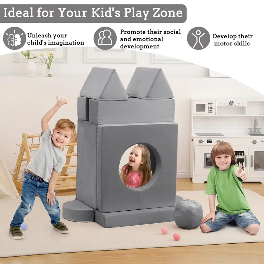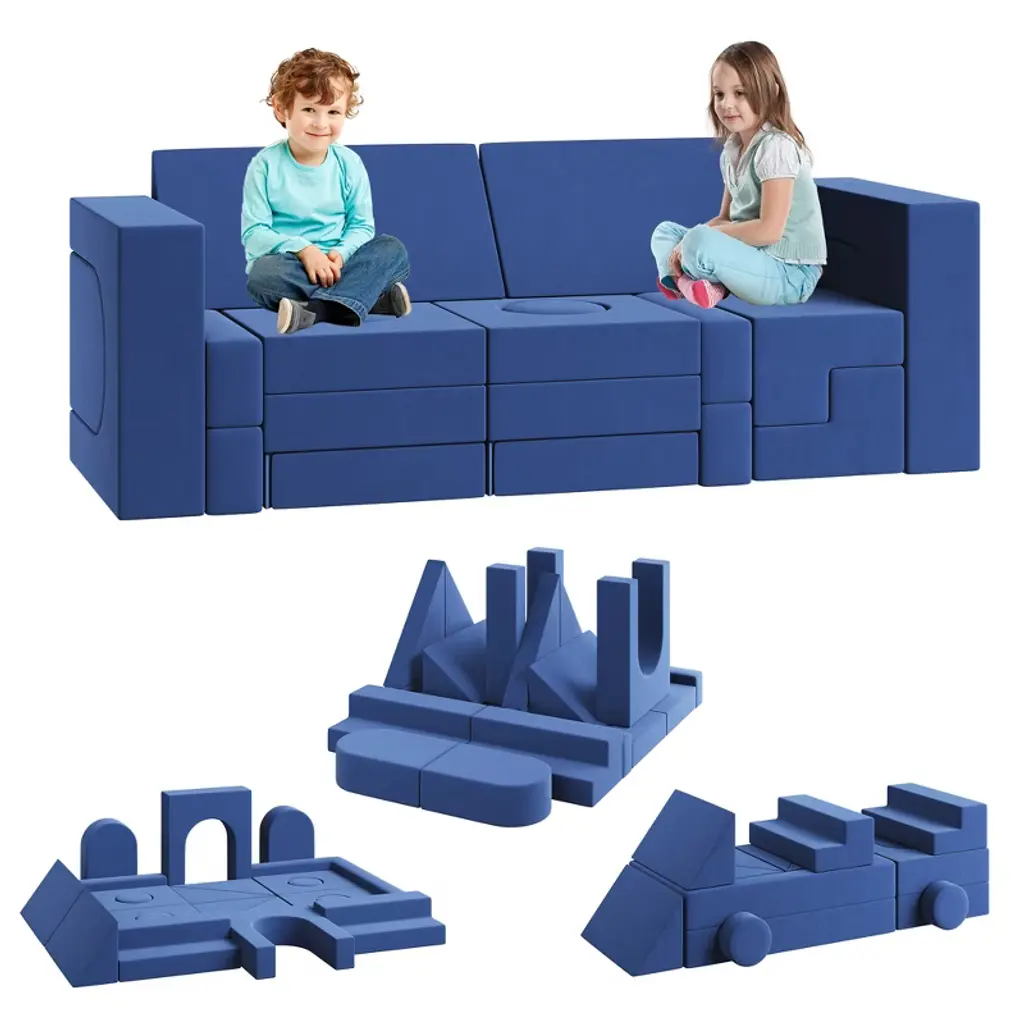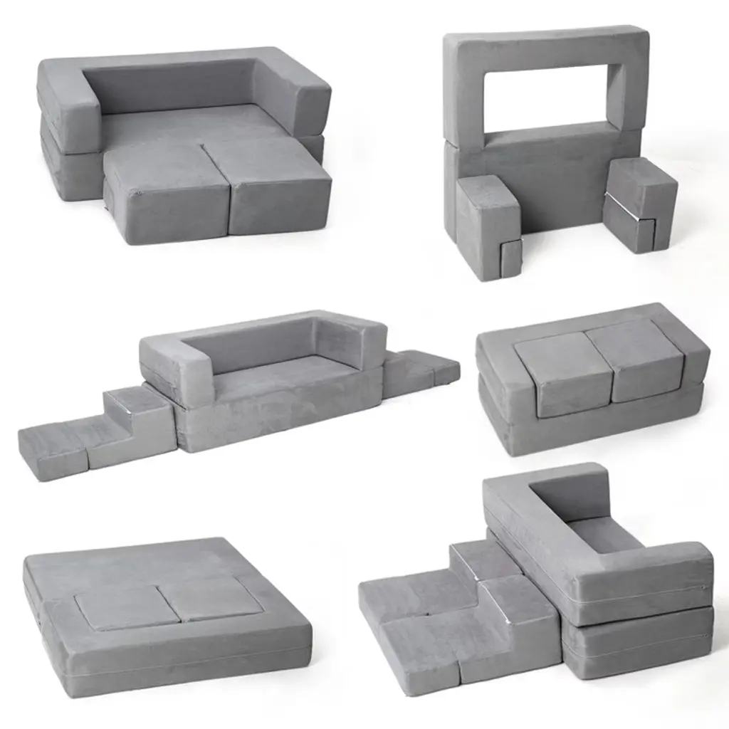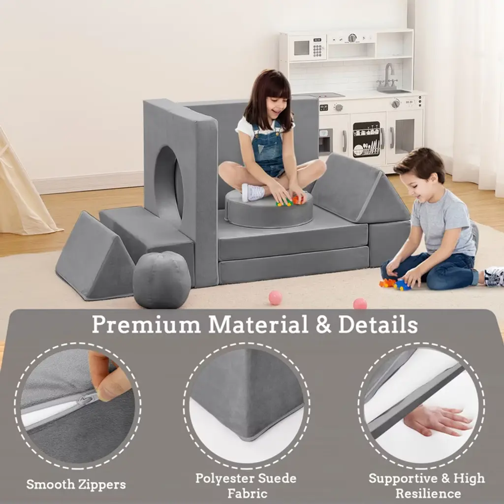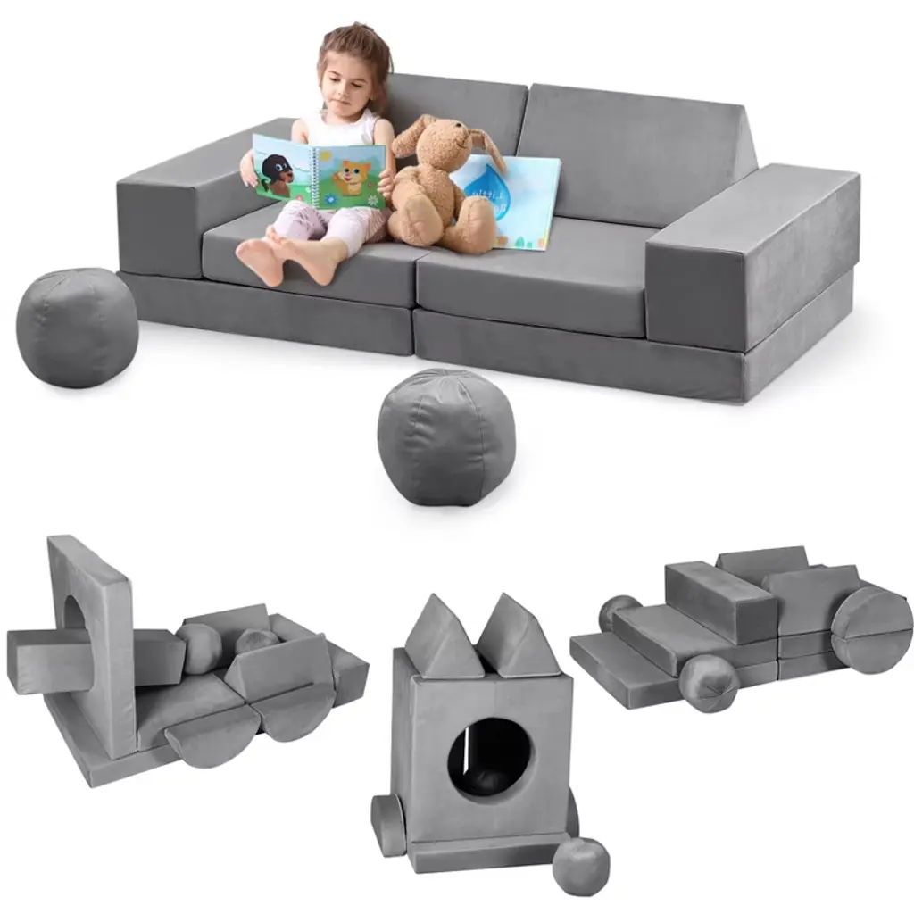 Kids Couch, 12 Pcs Kids Sofa, Toddler Sofa Moudlar Kids Play Couch, Sectional Sofa Convertible Foam Couch Dark Gray