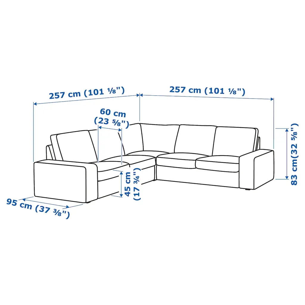 KIVIK Sectional, 4-seat corner - Kelinge gray-turquoise. Enjoy the super comfy KIVIK sofa with deep seat cushions made of pocket springs, high resilience foam and polyester fibers – adding both firm support and relaxing softness. 10-year guarantee. Read about the terms in the guarantee brochure.