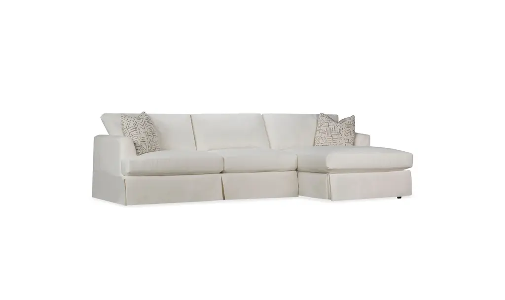 The Klaussner Bentley Slipcover Fabric Sectional Sofa in White is a perfect blend of casual elegance and exceptional comfort, making it an inviting centerpiece for your living space. Its clean, modern lines are enhanced by a tailored slipcover design that exudes effortless sophistication. The plush cushions are generously filled for a soft, supportive feel, while the durable frame ensures lasting stability. Designed with versatility in mind, the neutral upholstery and relaxed silhouette complement various interior styles, from contemporary to coastal-inspired spaces. This sectional offers ample seating, making it ideal for gatherings or cozy family evenings. The slipcover is removable, allowing for easy cleaning and maintenance to keep your sofa looking fresh and new. With its thoughtful craftsmanship and high-quality materials, the Bentley Slipcover Sectional Sofa combines style, functionality, and comfort, creating a welcoming atmosphere for years to come. NOTE: This product is customizable in multiple colors.
